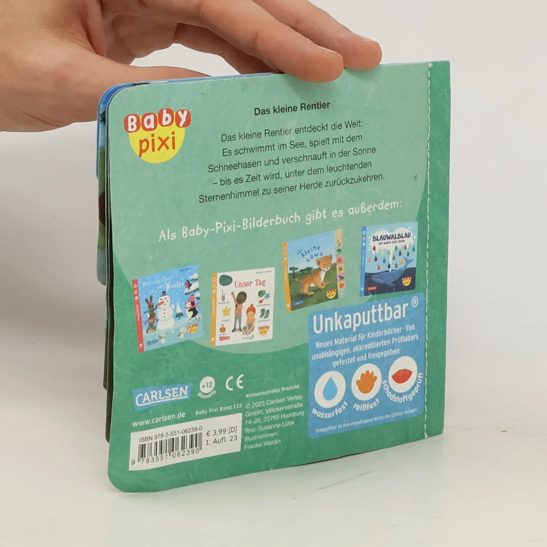Ein liebenswertes erstes Bilderbuch für die Winterzeit – und für das ganze Jahr! Das kleine Rentier entdeckt die zauberhafte Welt um sich herum: Es schwimmt im See, spielt mit dem Schneehasen und verschnauft in der Sonne – bis die Sterne am Himmel leuchten und es Zeit wird, zu seiner Herde zurückzukehren. Mit farbenfrohem Register als Blätterhilfe. Baby Pixi für die ganz Kleinen: Das innovative Material ist wasserfest, schadstoffgeprüft und reißfest. Baby Pixi – einfach unkaputtbar®!