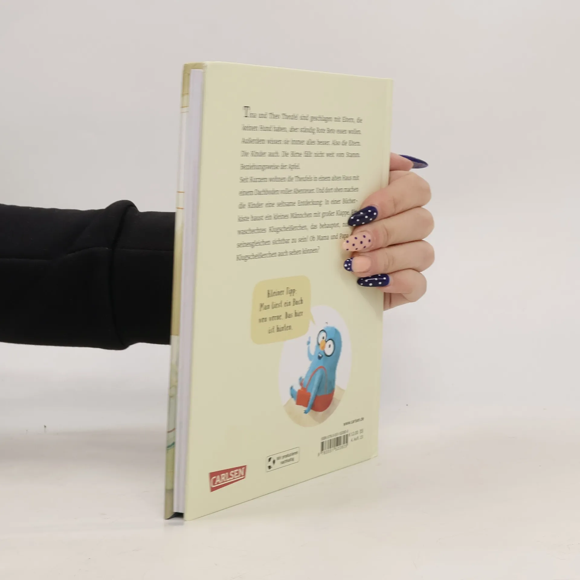 "Tina und Theo Theufel sind geschlagen mit Eltern, die keinen Hund haben, aber ständig Rote Beete essen wollen. Außerdem wissen sie immer alles besser. Also die Eltern. Die Kinder auch. Die Birne fällt nicht weit vom Stamm. Beziehungsweise der Apfel. Seit Kurzem wohnen die Theufels in einem alten Haus mit einem Dachboden voller Abenteuer. Und dort oben machen die Kinder auf dem Dachboden eine seltsame Entdeckung: In einer Bücherkiste haust ein kleines Männchen mit großer Klappe. Ein waschechtes Klugscheißerchen, das behauptet, nur für seinesgleichen sichtbar zu sein! Ob Mama und Papa das Klugscheisserchen auch sehen können?"--Publisher's website.