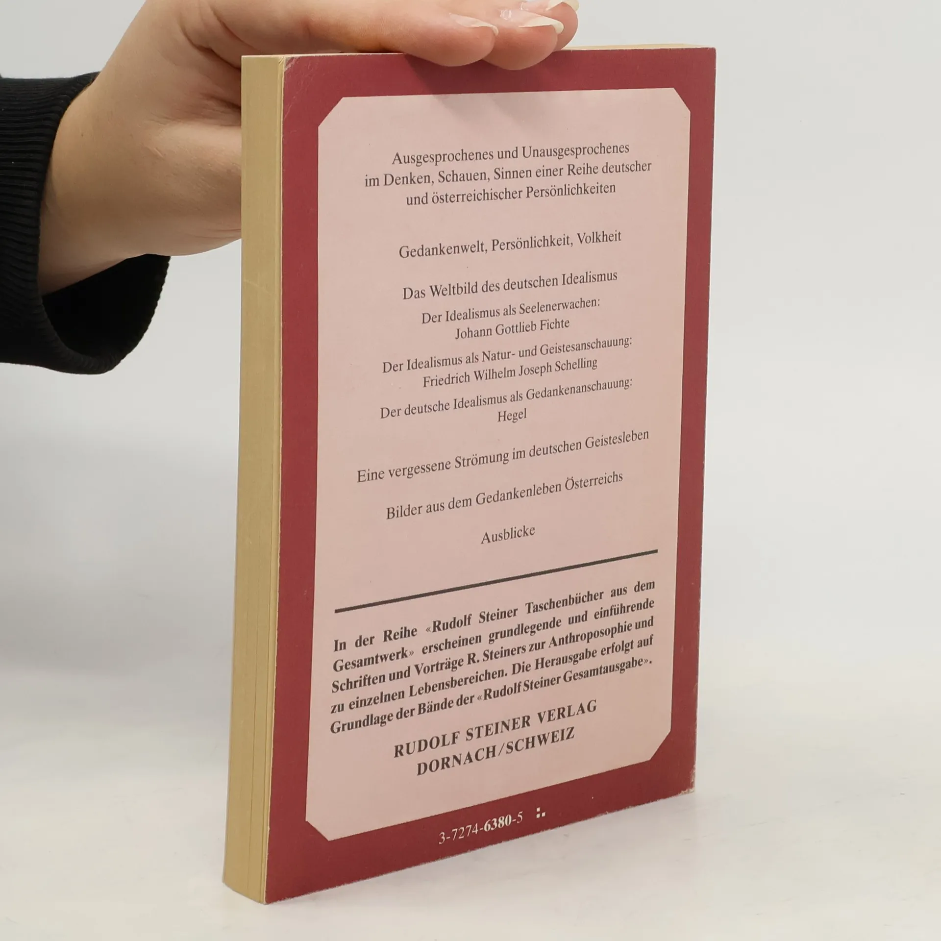 Inhalt: Gedankenwelt, Persönlichkeit, Volkheit / Das Weltbild des deutschen Idealismus / Der Idealismus als Seelenerwachen: J. G. Fichte / Der Idealismus als Natur- und Geistesanschauung: F. W. J. Schelling / Der deutsche Idealismus als Gedankenanschauung: G.W.F. Hegel / Eine vergessene Strömung im deutschen Geistesleben / Bilder aus dem Gedankenleben Österreichs / Ausblicke