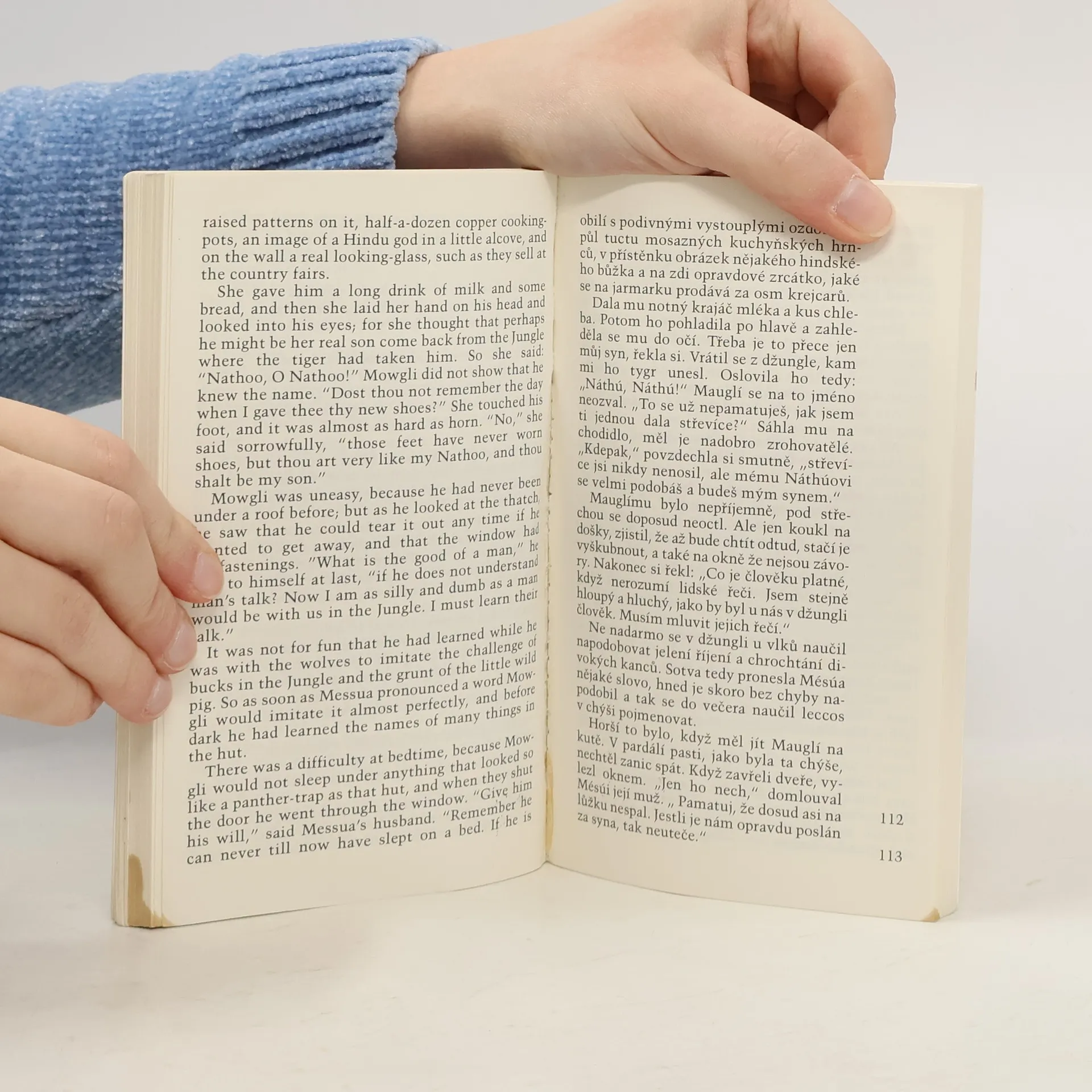 Dvojjazyčné vydání - anglický originál a český překlad - klasiky světové literatury pro přátele anglického jazyka. Slavný příběh lidského mláděte Mauglího začíná, když jako malé batole unikne ze spárů lidožravého tygra Šér Chána. Je zachráněn rodinou vlků a později je přijat i za člena vlčí smečky. Jak Mauglí dospívá, jeho zvířecí přátelé, mezi něž patří především odvážný černý panter Baghíra, moudrý medvěd Balú a lstivá krajta Ká, jej učí životu v džungli.. Nedaleko Mauglího se však neustále potlouká tygr Šér Chán, který si umínil, že chlapce přeci jen uloví. Jednoho dne se ale role obrátí a z lovce se stává kořist. Chlapec nakonec odvěkého nepřítele vláká chytrým plánem do léčky a zabije ho. Mauglí si také postupně hledá cestu k lidem. Přijmou ho zpět mezi sebe?