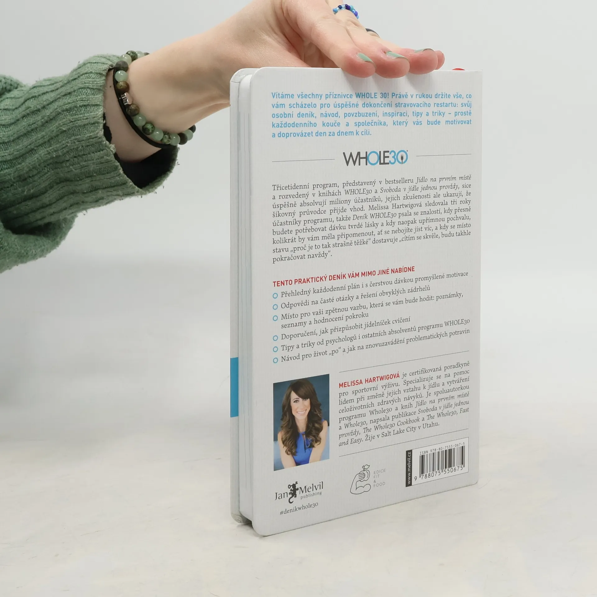Vítáme všechny příznivce WHOLE 30! Právě v rukou držíte vše, co vám scházelo pro úspěšné dokončení stravovacího restartu: svůj osobní deník, návod, povzbuzení, inspiraci, tipy a triky – prostě každodenního kouče a společníka, který vás bude motivovat a doprovázet den za dnem k cíli. Třicetidenní program, představený v bestselleru Jídlo na prvním místě a rozvedený v knihách WHOLE30 a Svoboda v jídle jednou provždy, sice úspěšně absolvují miliony účastníků, jejich zkušenosti ale ukazují, že šikovný průvodce přijde vhod. Melissa Hartwigová sledovala tři roky účastníky programu, takže Deník WHOLE30 psala se znalostí, kdy přesně budete potřebovat dávku tvrdé lásky a kdy naopak upřímnou pochvalu, kolikrát by vám měla připomenout, ať se nebojíte jíst víc, a kdy se místo stavu „proč je to tak strašně těžké“ dostavuje „cítím se skvěle, budu takhle pokračovat navždy“.
