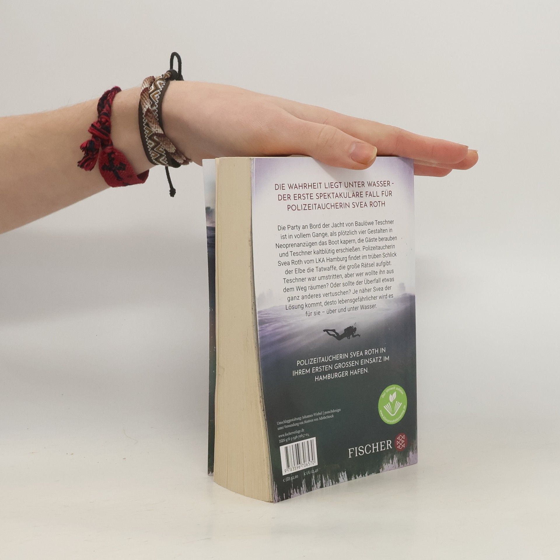 Die Wahrheit liegt unter Wasser – Der Serienstart und erste spektakuläre Fall für Polizeitaucherin Svea Roth Die Party an Bord der Jacht von Baulöwe Teschner ist in vollem Gange, als plötzlich vier Gestalten in Neoprenanzügen das Boot kapern, die Gäste berauben und Teschner kaltblütig erschießen. Polizeitaucherin Svea Roth vom BKA Hamburg findet im trüben Schlick der Elbe die Tatwaffe, die große Rätsel aufgibt. Teschner war umstritten, aber wer wollte ihn aus dem Weg räumen? Oder sollte der Überfall etwas ganz anderes vertuschen? Je näher Svea der Lösung kommt, desto lebensgefährlicher wird es für sie - über und unter Wasser. Der erste große Einsatz für Polizeitaucherin Svea Roth.