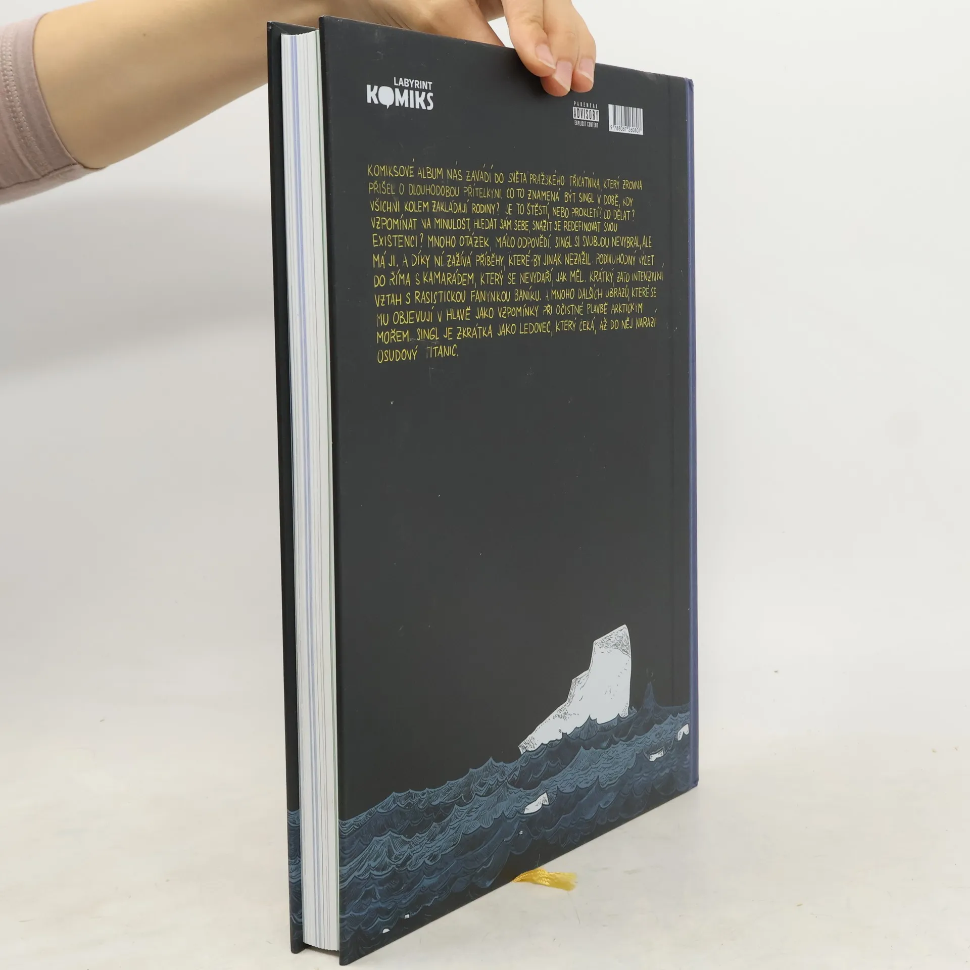 Existenciální komiksové album nás zavádí do světa pražského třicátníka, který zrovna přišel o dlouhodobou přítelkyni. Co to znamená být singl v době, kdy všichni kolem zakládají rodiny? Je to štěstí, nebo prokletí? Co dělat? Vzpomínat na minulost, hledat sám sebe, snažit se redefinovat svou existenci? Mnoho otázek, málo odpovědí. Singl si svobodu nevybral, ale má jí. A díky ní zažívá příběhy, které by jinak nezažil. Podivuhodný výlet do Říma s kamarádem, který se nevydaří, jak měl. Krátký, zato intenzivní vztah s rasistickou fanynkou Baníku. A mnoho dalších obrazů, které se mu objevují v hlavě jako vzpomínky při očistné plavbě arktickým mořem. Singl je zkrátka jako ledovec, který čeká, až do něj narazí osudový Titanic.