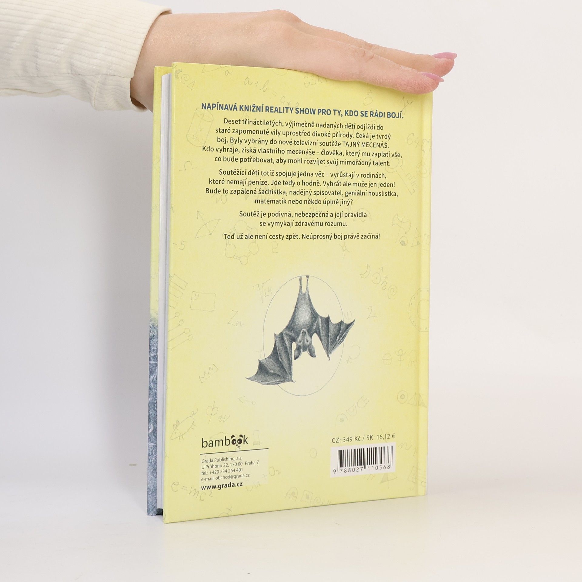 NAPÍNAVÁ KNIŽNÍ REALITY SHOW PRO TY, KDO SE RÁDI BOJÍ. Deset třináctiletých, výjimečně nadaných dětí odjíždí do staré zapomenuté vily uprostřed divoké přírody. Čeká je tvrdý boj. Byly vybrány do nové televizní soutěže TAJNÝ MECENÁŠ. Kdo vyhraje, získá vlastního mecenáše – člověka, který mu zaplatí vše, co bude potřebovat, aby mohl rozvíjet svůj mimořádný talent. Soutěžící děti totiž spojuje jedna věc – vyrůstají v rodinách, které nemají peníze. Jde tedy o hodně. Vyhrát ale může jen jeden! Bude to zapálená šachistka, nadějný spisovatel, geniální houslistka, matematik nebo někdo úplně jiný? Soutěž je podivná, nebezpečná a její pravidla se vymykají zdravému rozumu. Teď už ale není cesty zpět. Neúprosný boj právě začíná!