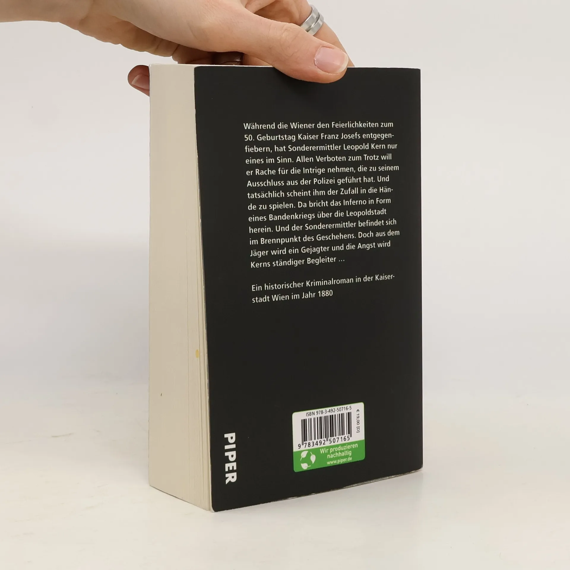 Im Wien der Ringstraßen-Zeit und der Belle Epoque ermittelt Leopold Kern, ein geheimer Sonderermittler mit engen Kontakten zur Halbwelt, in seinem neuesten Fall. »Zum ersten Mal in seinem Leben verspürte der blade Ferdl so etwas wie Todesangst. Er kämpfte die Übelkeit nieder, die sich seiner zu bemächtigen drohte und unterdrückte das übermächtige Verlangen, einfach davonzulaufen.« Während die Wiener den Feierlichkeiten zum 50. Geburtstag Kaiser Franz Josefs entgegenfiebern, hat Sonderermittler Leopold Kern nur eines im Sinn. Allen Verboten zum Trotz will er Rache für die Intrige nehmen, die zu seinem Ausschluss aus der Polizei geführt hat. Und tatsächlich scheint ihm der Zufall in die Hände zu spielen. Da bricht das Inferno in Form eines Bandenkriegs über die Leopoldstadt herein. Plötzlich befindet sich der Sonderermittler im Brennpunkt des Geschehens. Doch aus dem Jäger wird ein Gejagter und die Angst wird Kerns ständiger Begleiter. Als die Schockwellen des Verbrechens sogar die Hofburg erreichen, gerät selbst Polizeipräsident Marx unter nie gekannten Druck.