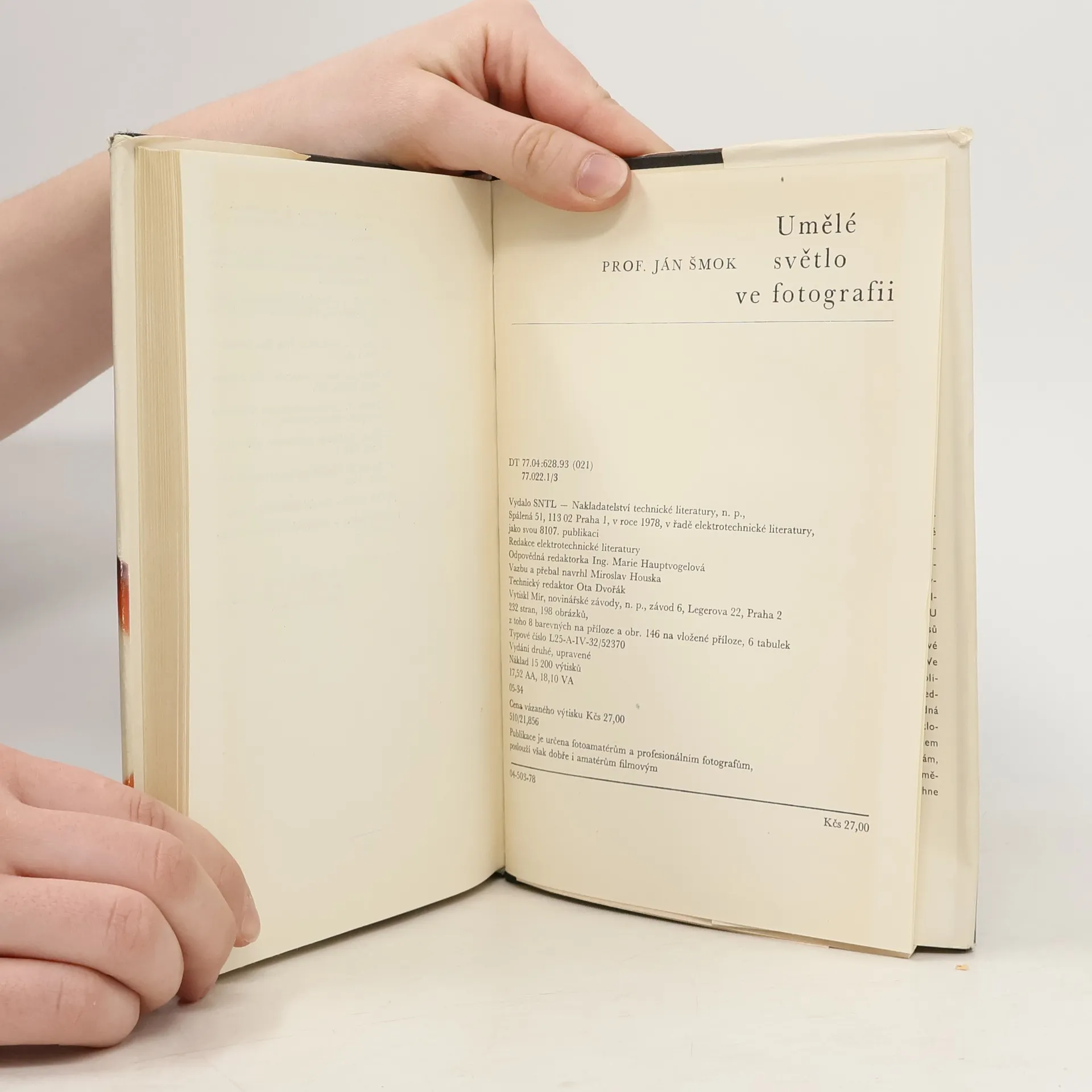 Kniha se všestranně zabývá technickou problematikou práce s umělým světlem. Obsahuje výklad základních pojmů, popis přístrojů, návod k práci se svítidly, luxmetrem i expozimetrem. Hlavní pozornost je věnována osvětlování předmětu, osoby, portrétu. Kniha je určena fotografickým amatérům a profesionálům, poslouží dobře i amatérům filmovým. 232 stran, 198 obrázků, z toho 8 barevných na příloze a 1 na vložené příloze, 6 tabulek. Vydání druhé, upravené.