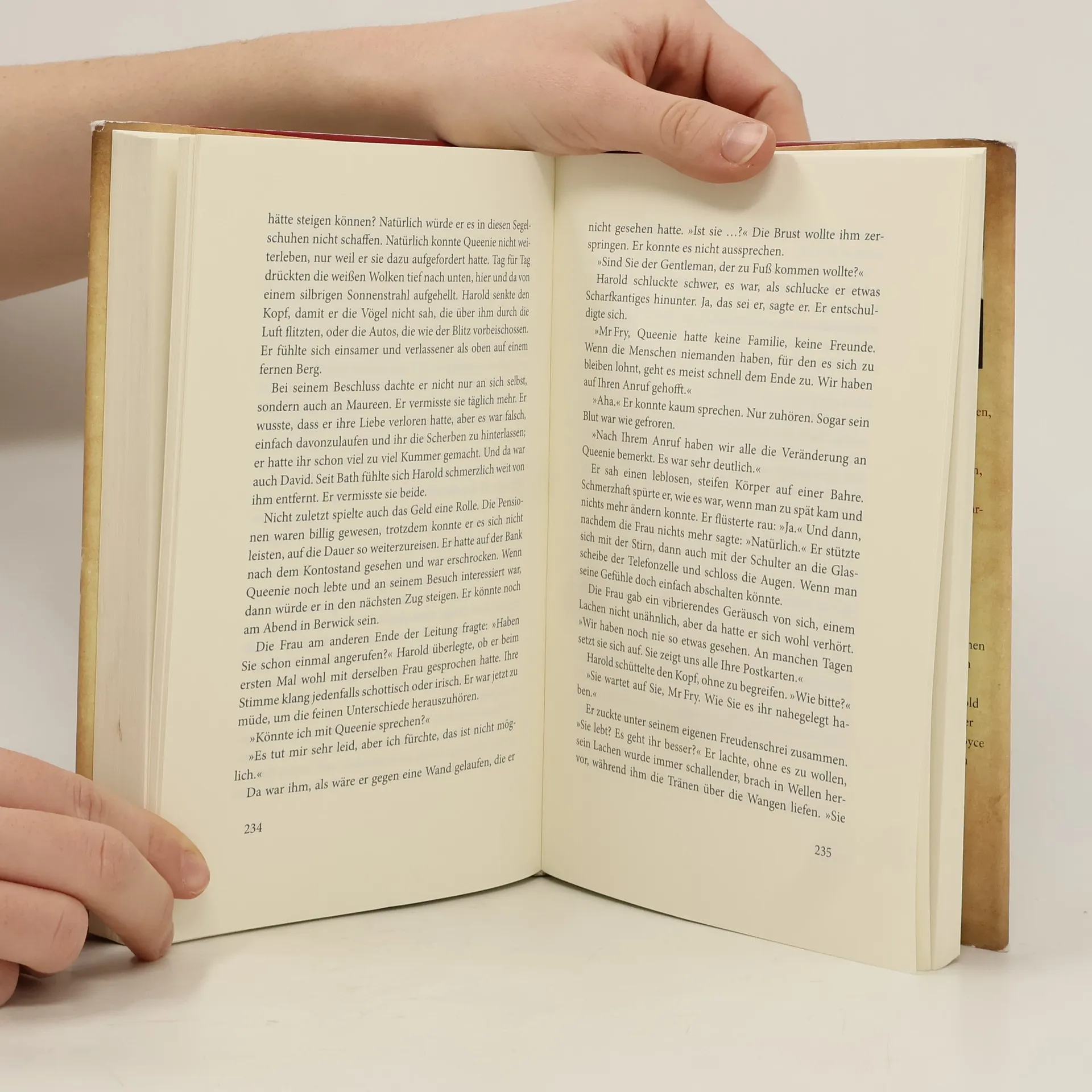 Eigentlich wollte er nur zum Briefkasten. Dann geht er 1000 Kilometer zu Fuß. Ein unvergesslicher Roman, der die ganze Welt erobert. 'Ich bin auf dem Weg. Du musst nur durchhalten. Ich werde Dich retten, Du wirst schon sehen. Ich werde laufen, und Du wirst leben.' Harold Fry will nur kurz einen Brief einwerfen an seine frühere Kollegin Queenie Hennessy, die im Sterben liegt. Doch dann läuft er am Briefkasten vorbei und auch am Postamt, aus der Stadt hinaus und immer weiter, 87 Tage, 1000 Kilometer. Zu Fuß von Südengland bis an die schottische Grenze zu Queenies Hospiz. Eine Reise, die er jeden Tag neu beginnen muss. Für Queenie. Für seine Frau Maureen. Für seinen Sohn David. Für sich selbst. Und für uns alle. Ein ganz außergewöhnlicher und tief berührender Roman – über Geheimnisse, besondere Momente und zufällige Begegnungen, die uns von Grund auf verändern. Über Tapferkeit und Betrug, Liebe und Loyalität und ein ganz unscheinbares Paar Segelschuhe. Auf der Longlist des Booker-Preises 2012.