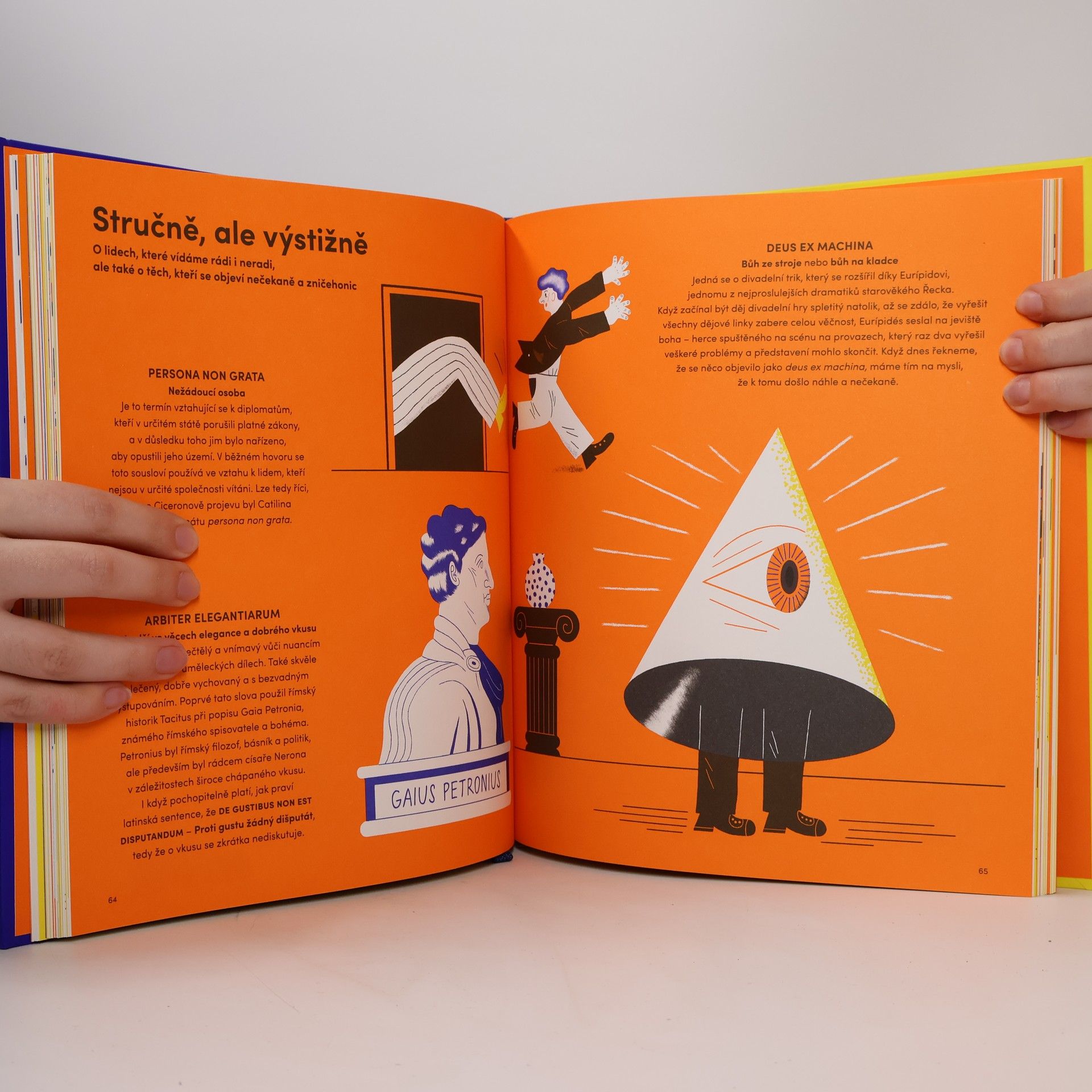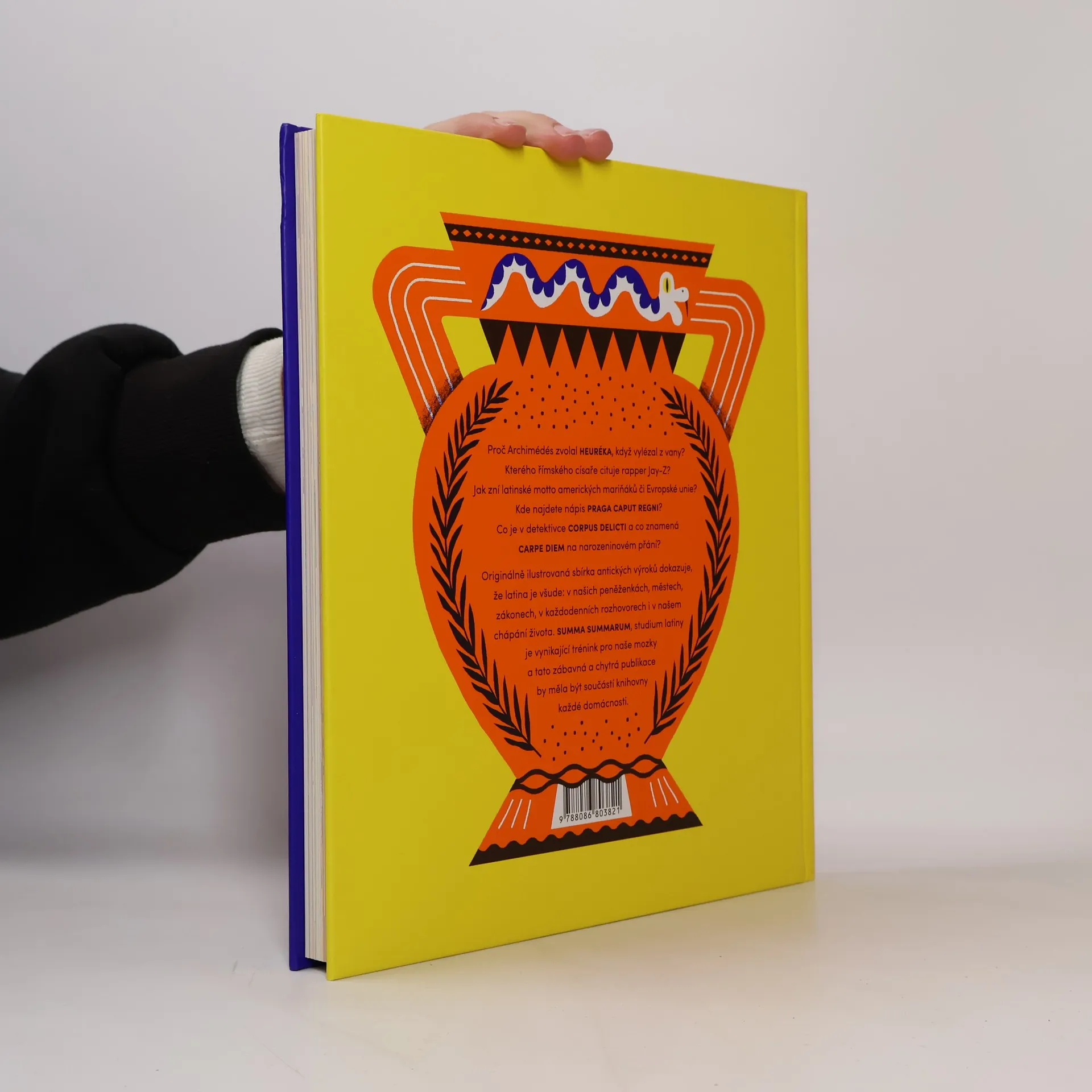 Proč Archimédés zvolal Heuréka , když vylézal z vany? Kterého římského císaře cituje rapper Jay-Z? Jak zní latinské motto amerických mariňáků či Evropské unie? Kde najdete nápis Praga caput regni? Co je v detektivce corpus delicti a co znamená carpe diem na narozeninovém přání? Originálně ilustrovaná sbírka antických výroků dokazuje, že latina je všude: v našich peněženkách, městech, zákonech, v každodenních rozhovorech i v našem chápání života. Příběhy z dob, kdy se moudří muži nechávali zabíjet pro vědu nebo možnost žít podle vlastního přesvědčení a kdy pár fíků mohlo ospravedlnit válku, k nám promlouvají i dnes. Summa summarum, studium latiny je vynikající trénink pro naše mozky a tato zábavná a chytrá publikace by měla být součástí knihovny každé domácnosti.