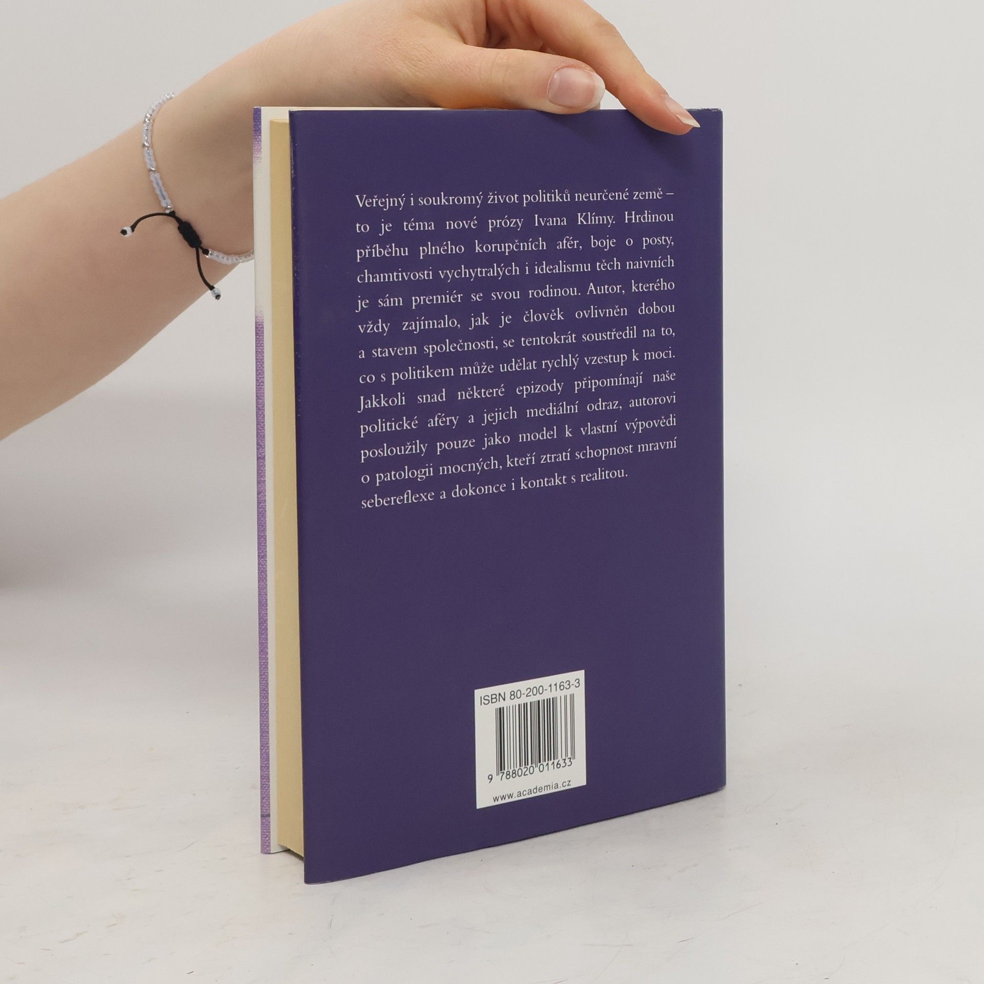 Veřejný i soukromý život politiků neurčené země - to je téma nové prózy Ivana Klímy. Hrdinou příběhu plného korupčních afér, boje o posty, chamtivosti i idealismu je sám premiér se svou rodinou. Jakkoli snad některé epizody připomínají naše politické aféry a jejich mediální odraz, autorovi posloužily pouze jako model k vlastní výpovědi o patologii mocných, kteří ztratí schopnost mravní sebereflexe a dokonce i kontakt s realitou.