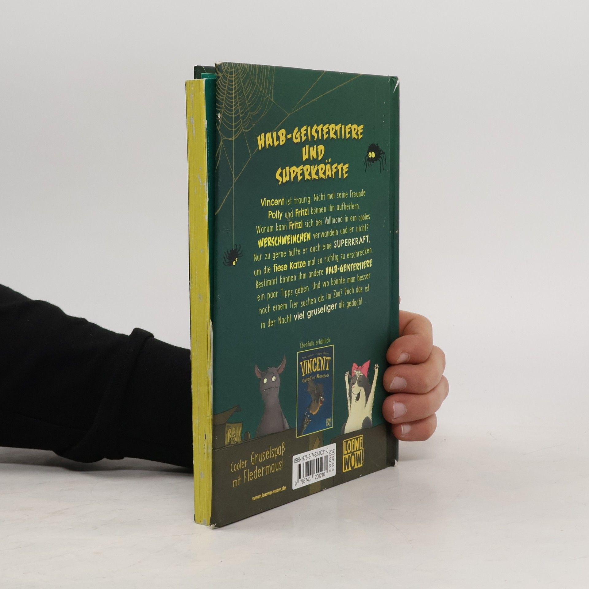 "Vincent ist traurig. Nicht mal seine Freunde Polly und Fritzi können ihn aufheitern. Warum kann Fritzi sich bei Vollmond in ein cooles Werschweinchen verwandeln und er nicht? Nur zu gerne hätte er auch eine Superkraft, um die fiese Katze mal so richtig zu erschrecken. Bestimmt können ihm andere Halb-Geistertiere ein paar Tipps geben. Und wo könnte man besser nach einem Tier suchen als im Zoo? Doch da ist es in der Nacht viel gruseliger als gedacht ..." -- Back cover