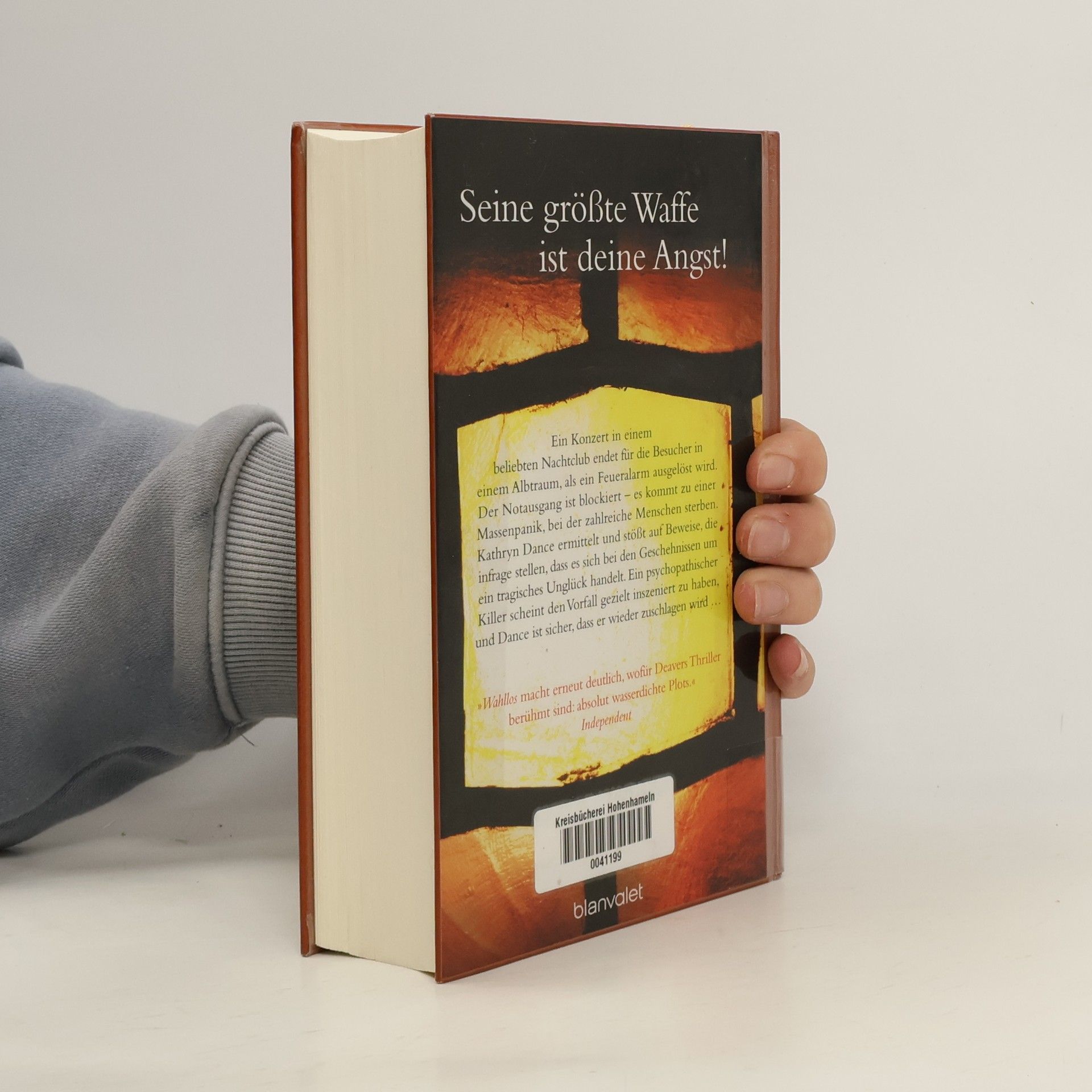 Seine größte Waffe ist deine Angst! Ein Konzert in einem beliebten Nachtclub endet für die Besucher in einem Albtraum, als ein Feueralarm ausgelöst wird. Der Notausgang ist blockiert – es kommt zu einer Massenpanik, bei der zahlreiche Menschen sterben. Kathryn Dance ermittelt und stößt auf Beweise, die infrage stellen, dass es sich bei den Geschehnissen um ein tragisches Unglück handelte. Ein psychopathischer Täter hat offenbar die Angst der Konzertbesucher ausgenutzt, um seine perversen Bedürfnisse zu befriedigen. Dance muss alles daransetzen, ihn unschädlich zu machen, denn sie ist sicher, dass er wieder zuschlagen wird …
