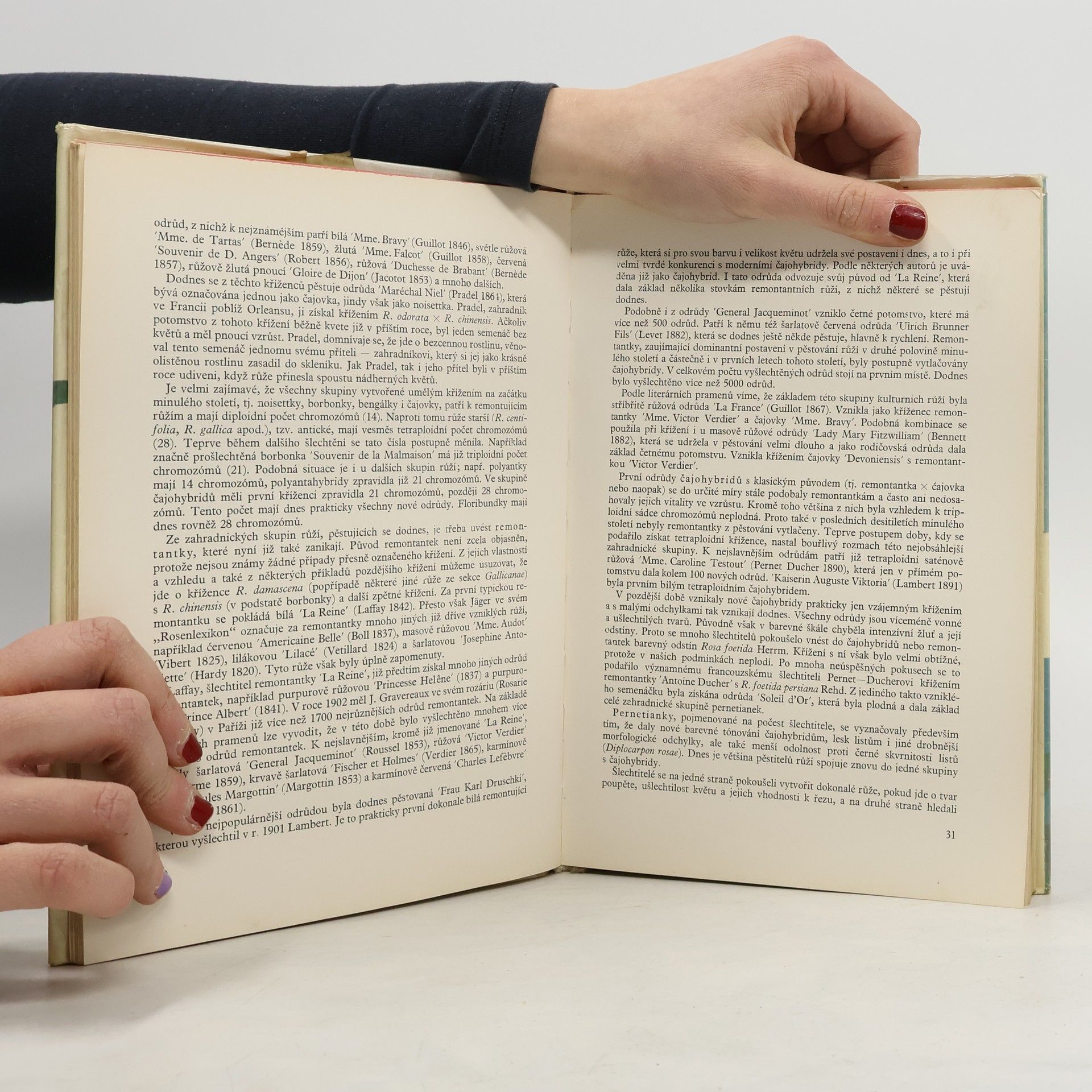 Historická část se zabývá pravděpodobným areálem vzniku nejstarších forem kulturních růží, rozvojem jejich pěstování a počátky šlechtění. V další části jsou uvedeny klasifikační systémy botanické a zahradnické. Ve speciální části jsou popsány nejdůležitější odrůdy, rozmnožování a pěstování růží, jejich použití v sadovnictví, rychlení, metody šlechtění a ochrana růží proti chorobám a škůdcům. Kniha je bohatě doplněna barevnými přílohami, černobílými fotografiemi a pérovkami.