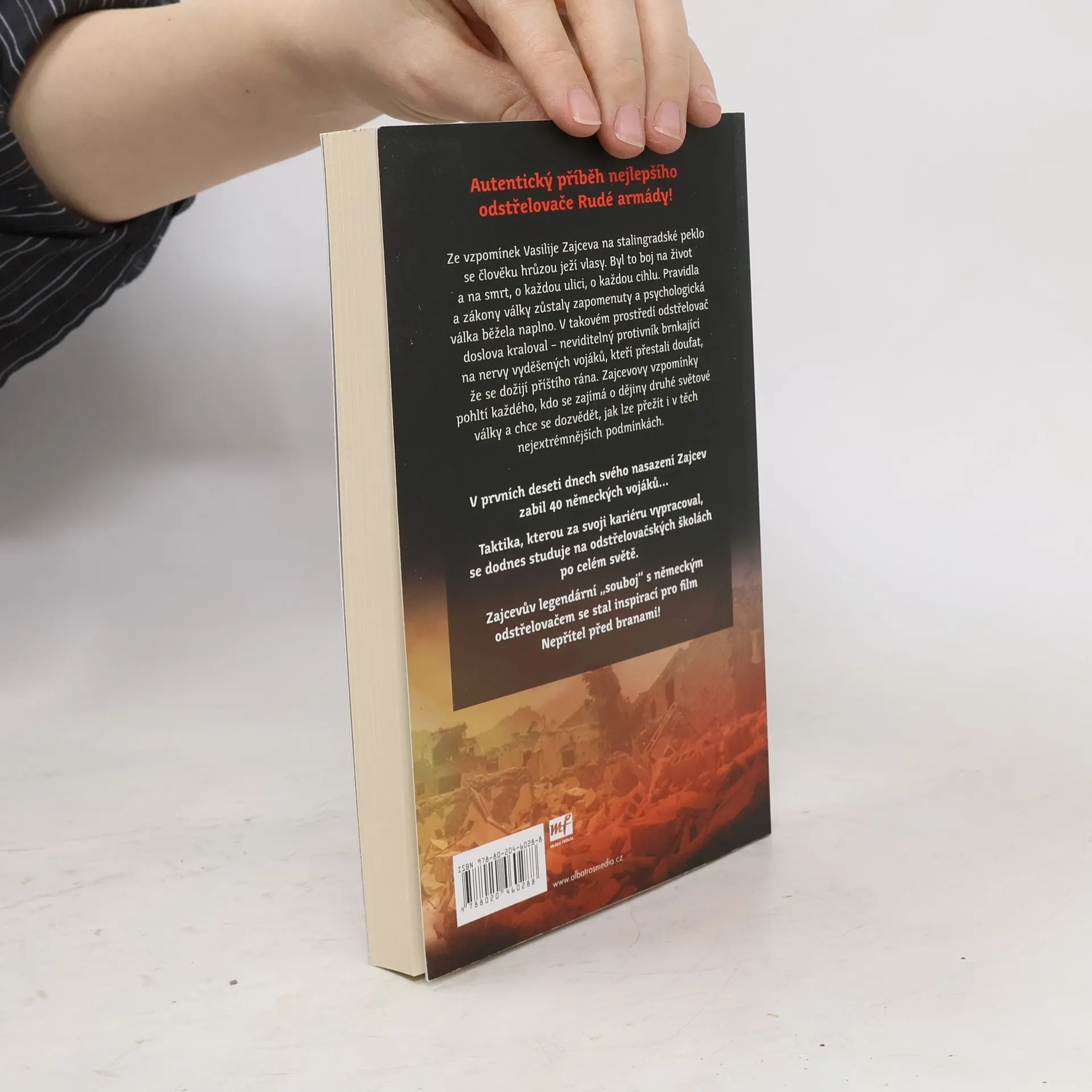 Autentický příběh nejlepšího odstřelovače Rudé armády. V prvních deseti dnech svého nasazení Zajcev zabil 40 německých vojáků. Ze vzpomínek Vasilije Zajceva (1915-1991) na stalingradské peklo se člověku hrůzou ježí vlasy. Byl to boj na život a na smrt, o každou ulici, o každou cihlu. Pravidla a zákony války zůstaly zapomenuty a psychologická válka běžela naplno. V takovém prostředí odstřelovač doslova kraloval jako neviditelný protivník brnkající na nervy vyděšených vojáků, kteří přestali doufat, že se dožijí příštího rána. Zajcevovy vzpomínky pohltí každého, kdo se zajímá o dějiny druhé světové války a chce se něco dozvědět, jak lze přežít i v těch nejextrémnějších podmínkách. Poskytují čtenáři jedinečný pohled do tváře války – tváře plné hrůzné brutality a zoufalství vojáků obou stran, tváře doložené děsivou statistikou mrtvých a raněných. Jeho Zápisky jsou považovány za nejlepší záznam o stalingradské bitvě z pera přímého účastníka bojů a představují klasické dílo válečné literatury. Taktika, kterou za svoji kariéru vypracoval se dodnes studuje na odstřelovačských školách po celém světě. Zajcevův legendární souboj s německým odstřelovačem se stal inspirací pro film Nepřítel před branami.