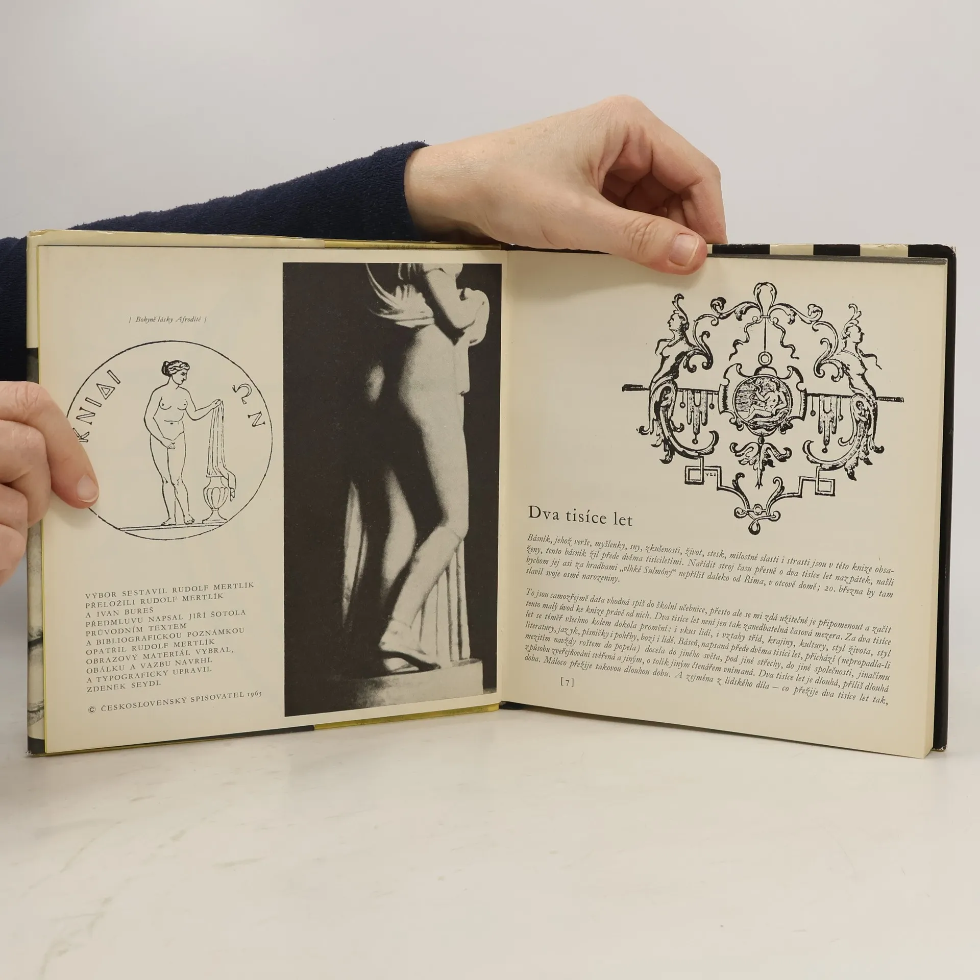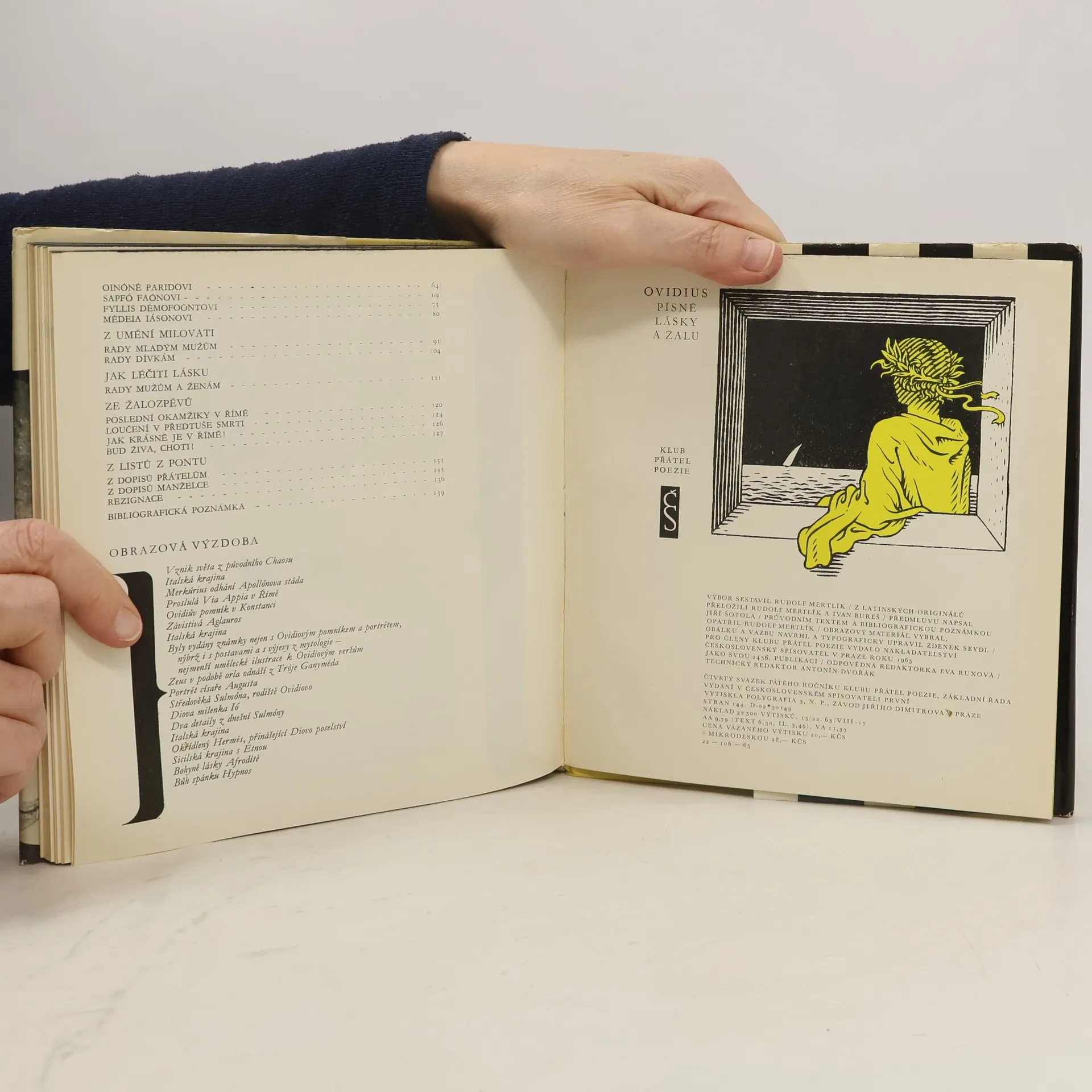 Rudolf Mertlík: Ovidius - písně lásky a žalu. Kniha je výbor z díla sestavený Rudolfem Mertlíkem a obsahuje v podstatě průřez Ovidiovou básnickou tvorbou (Publius Ovidius Naso, 43 př. n. l. – 18 n. l., byl římský básník). Mertlík je současně spolu s Ivanem Burešem i překladatelem z latinských originálů (Amores, Heroides, Ars amatoria, Remedia amoris, Tristia a Epistulae ex Ponto) a doplnil i bibliografickou poznámku a doprovodný text.