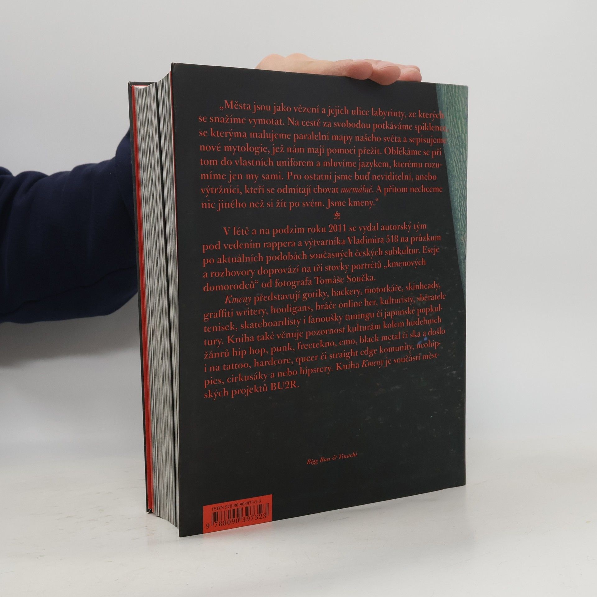 Kniha o vizuálním stylu českých subkultur. Kniha vznikla pod vedením Vladimira 518 a ve fotkách a textech představuje aktuální podobu pražských komunit od hip hopu a hardcore, přes gotiky a neohippies, až po motorkáře, fanoušky tuningu či milovníky japonské popkultury. Jejich vizuální a životní styl mapuje více než tři sta barevných snímků fotografa Tomáše Součka. Kniha KMENY je součástí městských projektů BU2R. Na knize KMENY se podílelo pětadvacet domácích autorů, kteří dají nahlédnout do historie i současnosti jednotlivých městských subkultur. Kay Buriánek z kapely Sunshine se například rozepsal o emo kultuře, rapper James Cole o hráčích počítačových her a publicistka Jana ‚Apačka' Kačurová zmapovala partičky kolem tetovacích salónů. Jejich úvodní text doplňují rozhovory s kmenovými „domorodci“. Autorem předmluvy o historii subkultur u nás je guru domácí alternativní kultury Josef Rauvolf. Příslušníky jednotlivých kmenů zachytil v jejich autentickém prostředí fotograf Tomáš Souček, který říká: „Vždycky mě přitahovali lidé, kteří dělají věci jinak a žijí si po svém, a teď jsem s nimi mohl strávit několik velmi intenzivních chvil.“