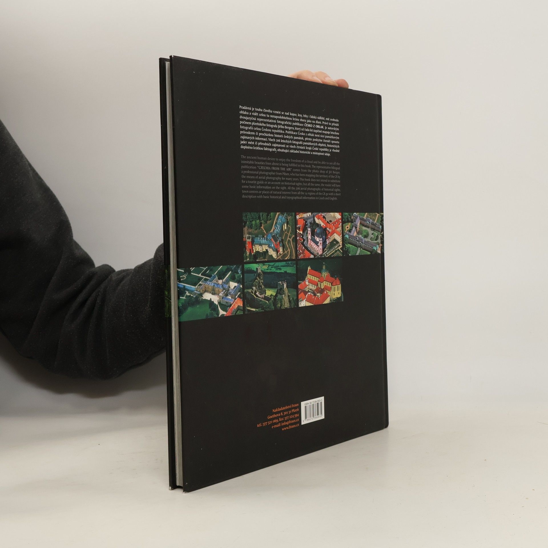 Pradávná je touha člověka vznést se nad kopce, lesy, řeky i lidská sídliště, mít svobodu oblaku a vidět celou tu nenapodobitelnou krásu shora jako na dlani. Právě to přináší dvoujazyčná reprezentativní fotografická publikace Česko z oblak. Je autorským počinem plzeňského fotografa Jiřího Bergera, který už řadu let úspěšně mapuje leteckou fotografií celou Českou republiku. Publikace Česko z nebe si v žádném případě nečiní nárok být památkovým průvodcem či procházkou po historii českých památek, ale přesto se čtenáři dostane i mnoho zajímavých informací v češtině i angličtině. Všech 206 leteckých fotografií památkových objektů, historických jader měst, či přírodních zajímavostí ze všech čtrnácti krajů České republiky je vhodně doplněno krátkou faktografií, obsahující základní historické a místopisné údaje.