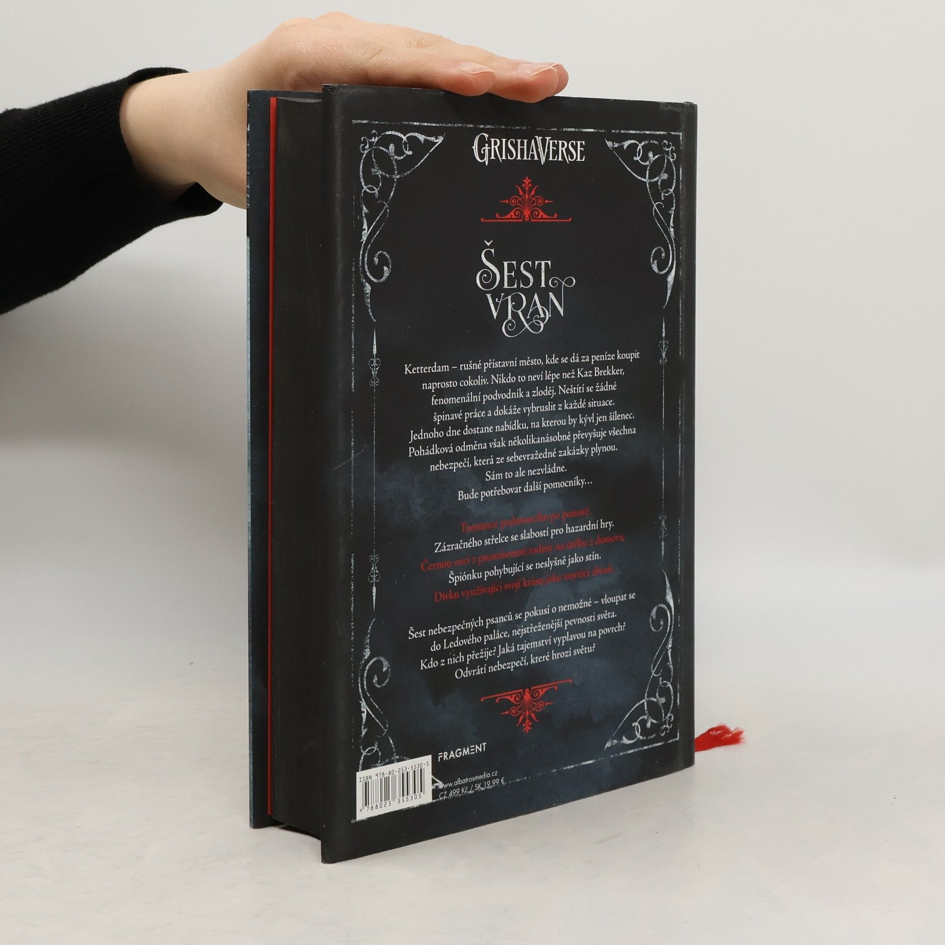 Úspěchy ověnčená fantasy od současné hvězdy young adult literatury Leigh Bardugo! Za peníze se dá koupit všechno! Nebo aspoň to platí v Ketterdamu, ve kterém se nikdo nevyzná lépe než Kaz Brekker, fenomenální podvodník a zloděj. A když se objeví neodolatelná zakázka? Je čas sehnat si pomocníky. Zloděj, trestanec, hazardní hráč, černá ovce rodiny, špionka a kráska-zabiják – šest nebezpečných psanců, kteří se pokusí dostat se do nejstřeženější pevnosti světa. Podaří se jim vyváznout se zdravou kůží?