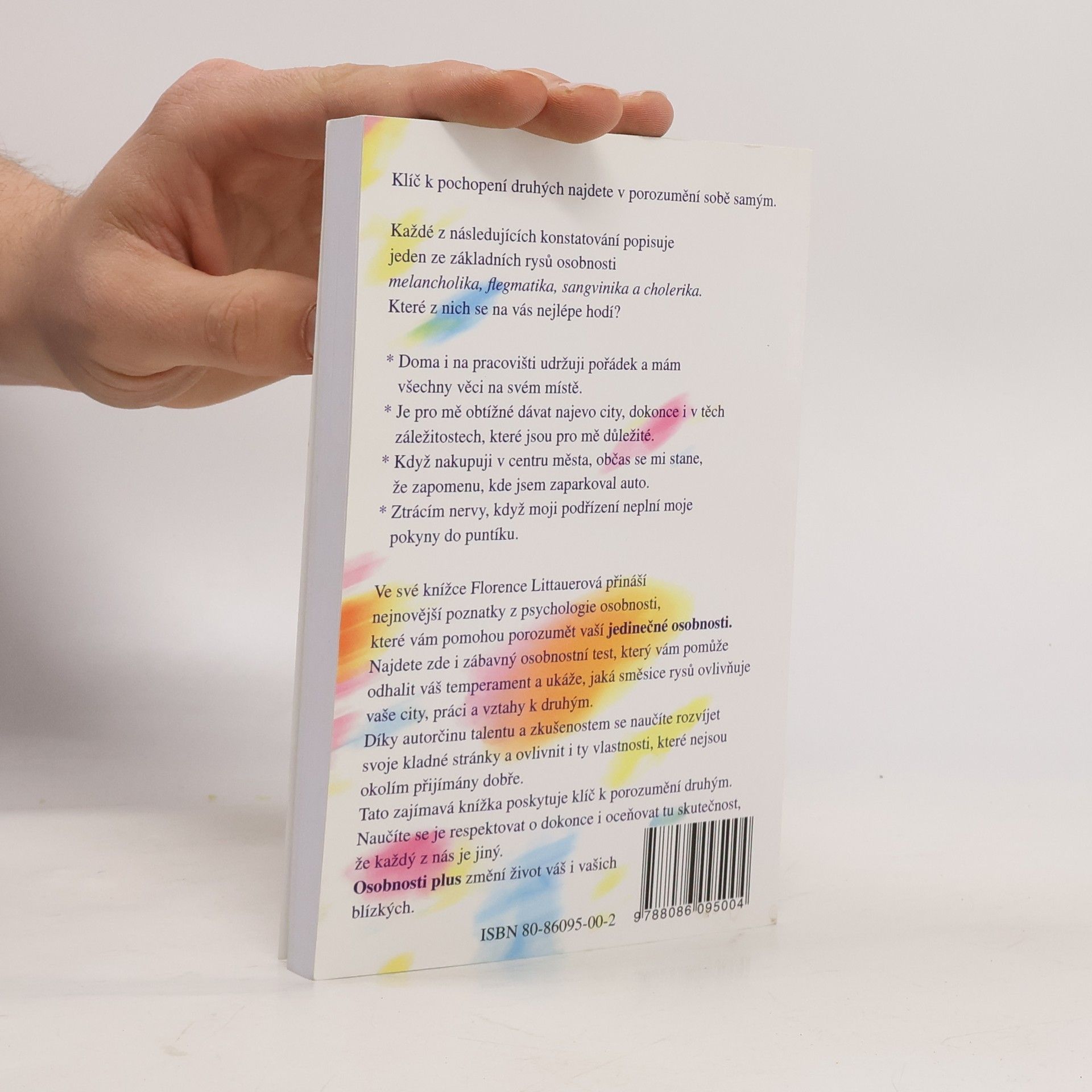 Jak porozumět druhým porozuměním sobě samým. Významná psycholožka nabízí v knize klíč k porozumění druhých a přináší poznatky k pochopení své vlastní jedinečné osobnosti na základě rozdílných povah melancholika, cholerika, sangvinika, flegmatika a jejich zastoupení v každém z nás. Naučí čtenáře rozvinout své klady a ovlivnit zápory vlastní osobnosti. Součástí knihy je užitečný osobnostní test.... celý text