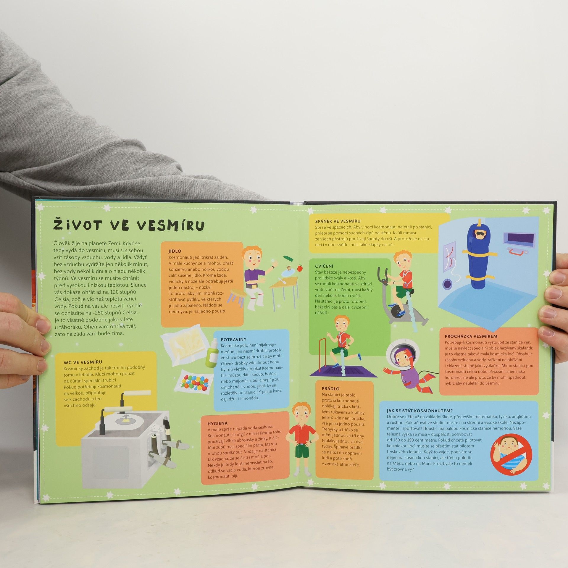 Nádherně ilustrovaný atlas s šesti velkými rozkládacími mapami odhalí všem malým zájemcům skrytá tajemství blízkého i  vzdáleného vesmíru. Čeká tě procházka po naší Sluneční soustavě, navštívíš komety a planetky, podnikneš výlet na Měsíc, seznámíš se s  prvními astronauty a vyzkoušíš si, jaké je cestovat v raketoplánu nebo žít na vesmírné stanici. Mapa severní i jižní oblohy tě naučí rozpoznávat ta nejznámější souhvězdí.