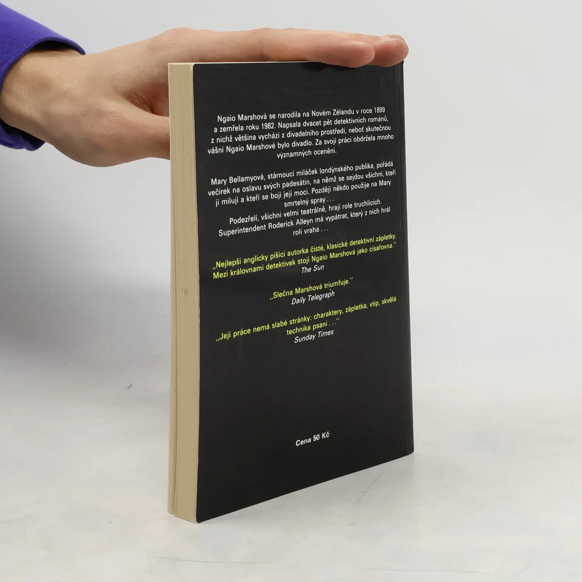 Detektivní román anglické autorky narozené na Novém Zélandu se odehrává v divadelním prostředí v Londýně. Slavná herečka, stárnoucí miláček londýnského publika, připravuje ve své rezidenci večírek na oslavu svých 50. narozenin. Ve chvíli, kdy rodina a přátelé očekávají zlatý hřebvečera, je herečka nalezena ve svém pokoji mrtvá. Mnozí z účastníků večera mají důvod se s touto ženou, která pod maskou velkodušnosti a laskavosti skrývá tvrdou a sobeckou povahu, vypořádat a podezřelý z vraždy je vlastně každý z nich.