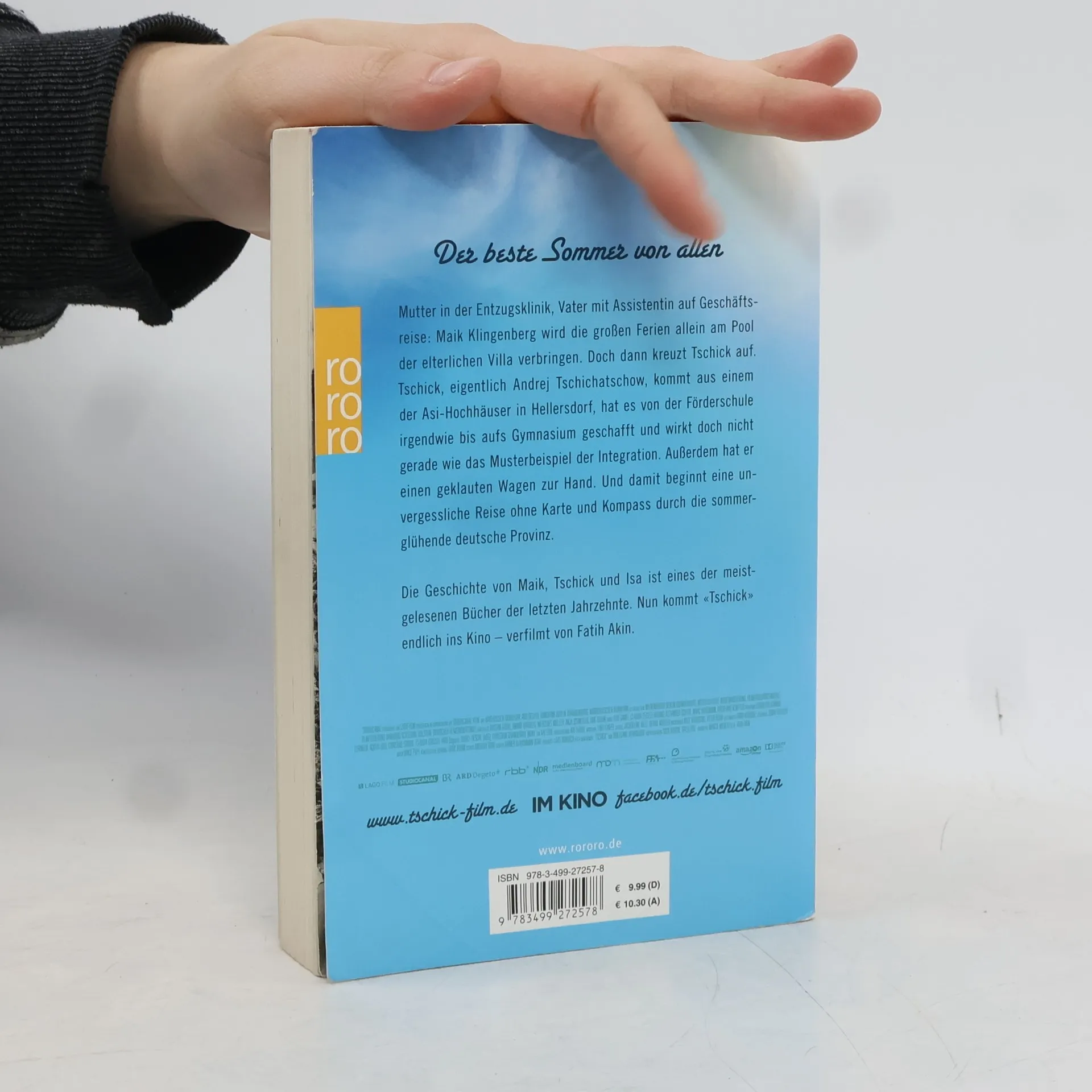 Der beste Sommer von allenMutter in der Entzugsklinik, Vater mit Assistentin auf Geschäftsreise: Maik Klingenberg wird die großen Ferien allein am Pool der elterlichen Villa verbringen. Doch dann kreuzt Tschick auf. Tschick, eigentlich Andrej Tschichatschow, kommt aus einem der Asi-Hochhäuser in Hellersdorf, hat es von der Förderschule irgendwie bis aufs Gymnasium geschafft und wirkt doch nicht gerade wie das Musterbeispiel der Integration. Außerdem hat er einen geklauten Wagen zur Hand. Und damit beginnt eine unvergessliche Reise ohne Karte und Kompass durch die sommerglühende deutsche Provinz. Die Geschichte von Maik, Tschick und Isa ist eines der meistgelesenen Bücher der letzten Jahrzehnte. Nun kommt «Tschick» endlich ins Kino - verfilmt von Fatih Akin