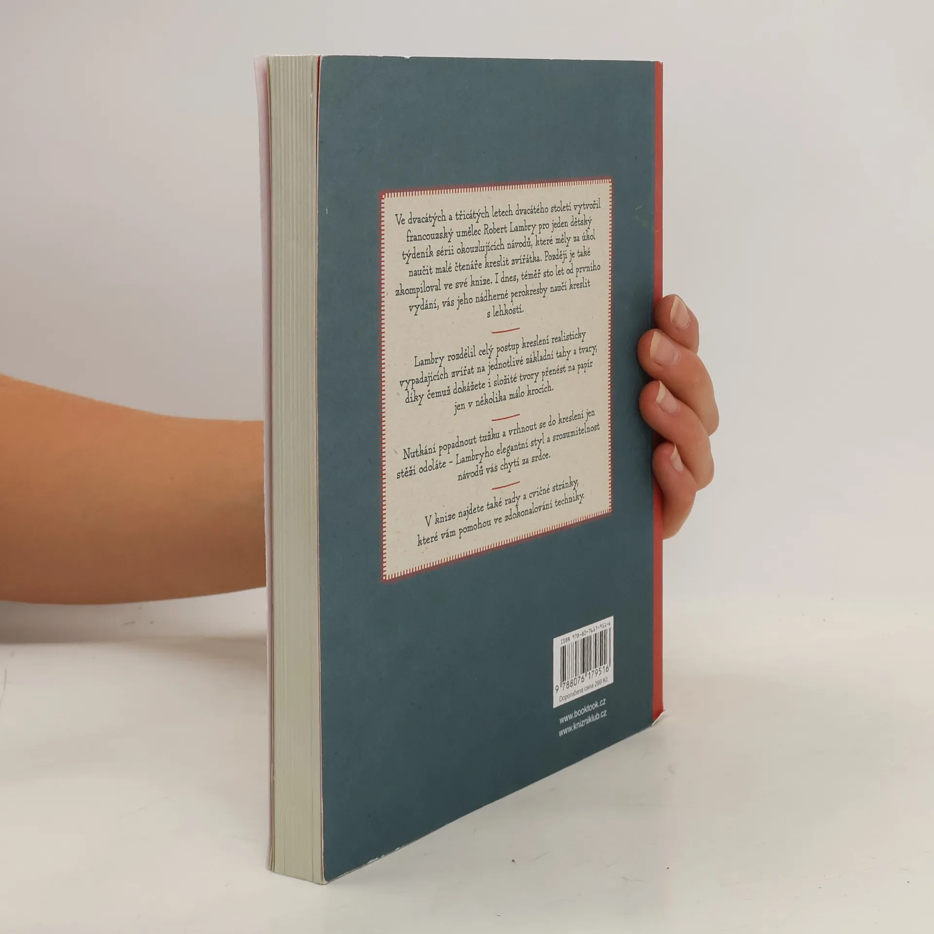Chtěli byste umět několika tahy nakreslit lva, žirafu, veverku nebo lachtana tak, aby vypadali jako živí? Tato jedinečná kniha vám ukáže, jak v několika jednoduchých krocích přenést i složité tvary na papír a vytvořit realistickou kresbu více než 150 zvířátek. Robert Lambry, autor unikátní příručky, která se po téměř 100 letech dostává opět mezi čtenáře, vypracoval ojedinělou metodu, díky níž každý dokáže lehce vystihnout charakteristický tvar a pohyb i těch nejsložitějších zvířat. V knize najdete také spoustu tipů a prostoru na vlastní výtvory. Podlehněte nutkání popadnout tužku, následovat příklady a začít kreslit jakékoli zvíře Lambryho metodou!