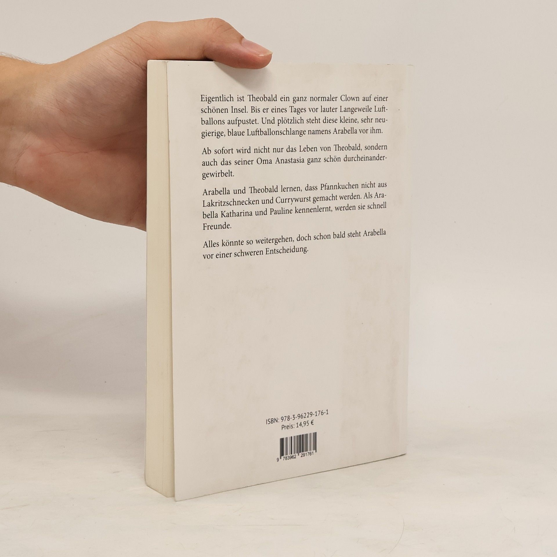 Eigentlich ist Theobald ein ganz normaler Clown auf einer schönen Insel. Bis er eines Tages vor lauter Langeweile Luftballons aufpustet. Und plötzlich steht diese kleine, sehr neugierige, blaue Luftballonschlange namens Arabella vor ihm. Ab sofort wird nicht nur das Leben von Theobald, sondern auch das seiner Oma Anastasia ganz schön durcheinandergewirbelt.Arabella und Theobald lernen, dass Pfannkuchen nicht aus Lakritzschnecken und Currywurst gemacht werden. Als Arabella Katharina und Pauline kennenlernt, werden sie schnell Freunde. Alles könnte so weitergehen, doch schon bald steht Arabella vor einer schweren Entscheidung.