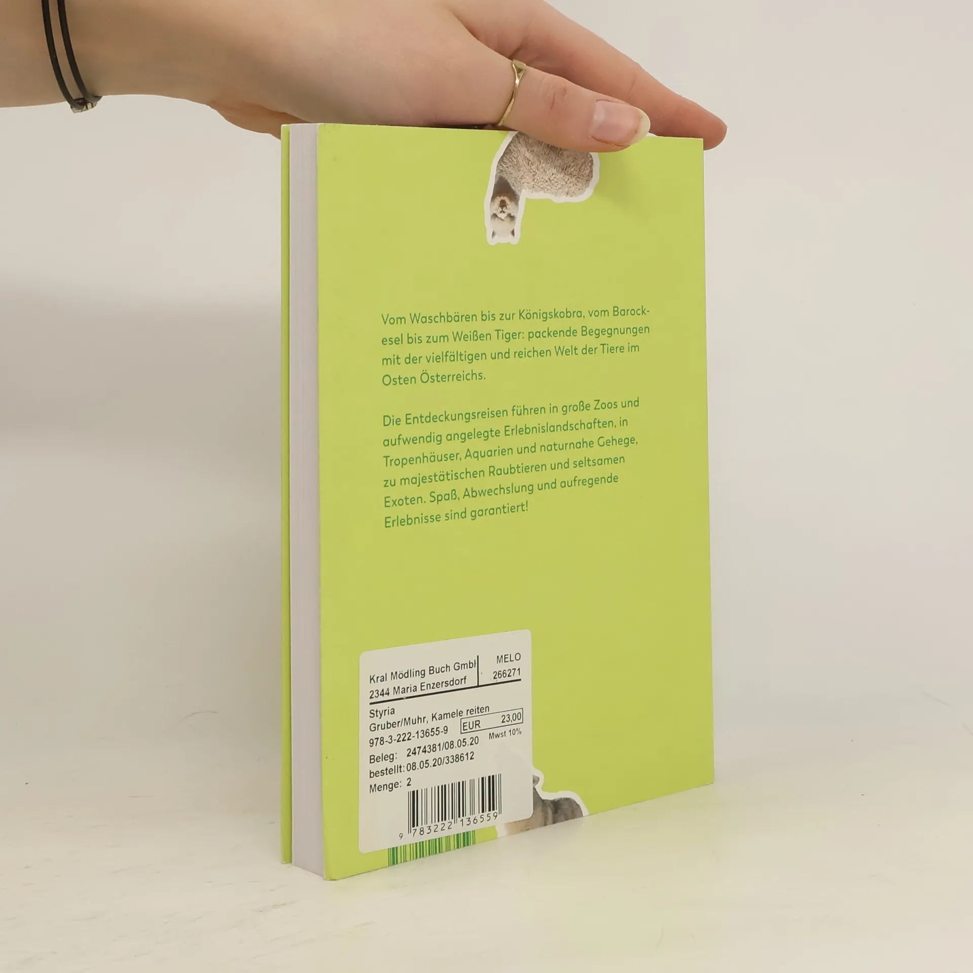 Die Begegnung mit Tieren bietet Spaß und Spannung und vielfältige Abenteuer: Man kann sie beobachten, beschnuppern, streicheln, striegeln, füttern, zu ihnen sprechen, sie auf Spaziergängen begleiten und manchmal auch auf ihnen reiten – Tiere können zu Gefährten, ja, zu Freunden werden. Im Umgang mit ihnen lernt man ihre Welt und ihr Wesen kennen. Alexandra Gruber und Wolfgang Muhr trauen sich zu Wölfen und Fischottern ins Gehege, liefern sich ein „Hatzerl“ mit Huskys und Straußen, unternehmen einen Ausflug mit Kamelen und verbringen die Nacht in Gesellschaft von Eulen und Waschbären. Sie bewundern herrliche Weiße Tiger und einen malenden Barockesel ebenso wie Millionen von fleißigen Regenwürmern und füttern eine der seltensten Vogelarten der Welt. Ein Ausflugsführer, der jeden Tierfreund zum Staunen bringen wird! Weitere Infos zu den Büchern finden Sie auf der Website der Autoren: www.panoramabox.at