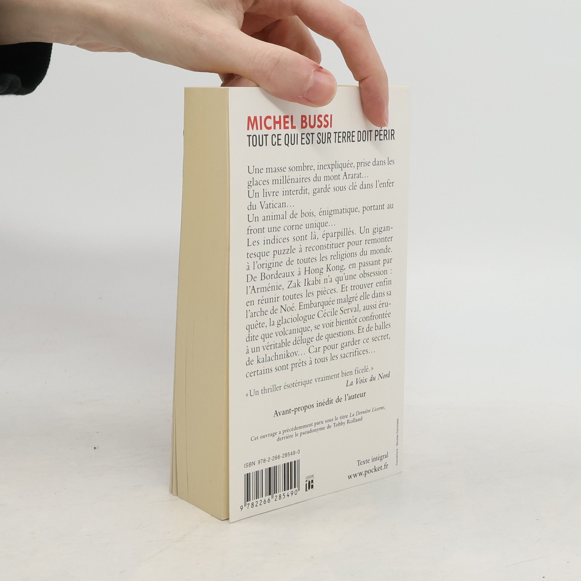 Une masse sombre, inexpliquée, prise dans les glaces millénaires du Mont Ararat... Un livre interdit, gardé sous clé dans l'enfer du Vatican... Un animal de bois, énigmatique, portant au front une corne unique... Les indices sont là, éparpillés. Un gigantesque puzzle à reconstituer pour remonter à l'origine de toutes les religions du monde. De Bordeaux à Hong-Kong, en passant par l'Arménie, Zak Ikabi n'a qu'une obsession : en réunir toutes les pièces. Et trouver enfin l'arche de Noé. Embarquée malgré elle dans sa quête, la glaciologue Cécile Serval, aussi érudite que volcanique, se voit bientôt confrontée à un véritable déluge de questions. Et de balles de kalachnikov... Car pour garder ce secret, certains sont prêts à tous les sacrifices... " Un thriller ésotérique vraiment bien ficelé. " La Voix du Nord Cet ouvrage a précédemment paru sous le titre La Dernière Licorne, derrière le pseudonyme de Tobby Rolland Préface inédite de l'auteur.