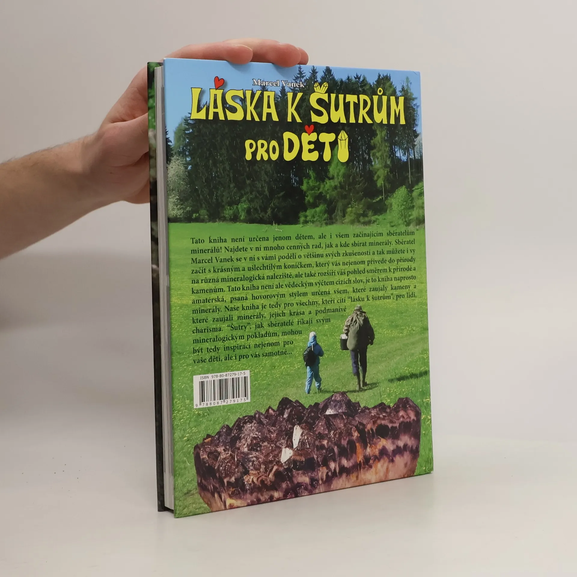 Tato kniha není určena jenom dětem, ale i všem začínajícím sběratelům minerálů! Najdete v ní mnoho cenných rad, jak a kde sbírat minerály. Sběratel Marcel Vanek se v ní s vámi podělí o většinu svých zkušeností a tak můžete i vy začít s krásným a ušlechtilým koníčkem, který vás nejenom přivede do přírody na různá mineralogická naleziště, ale také rozšíří váš pohled směrem k přírodě a kamenům. Tato kniha není ale vědeckým výčtem cizích slov, je to kniha naprosto amatérská, psaná hovorovým stylem určená všem, které zaujaly kameny a minerály. Naše kniha je tedy pro všechny, kteří cítí "lásku k šutrům", pro lidi, které zaujali minerály, jejich krása a podmanivé charisma. "Šutry", jak sběratelé říkají svým mineralogickým pokladům, mohou být tedy inspirací nejenom pro vaše děti, ale i pro vás samotné...