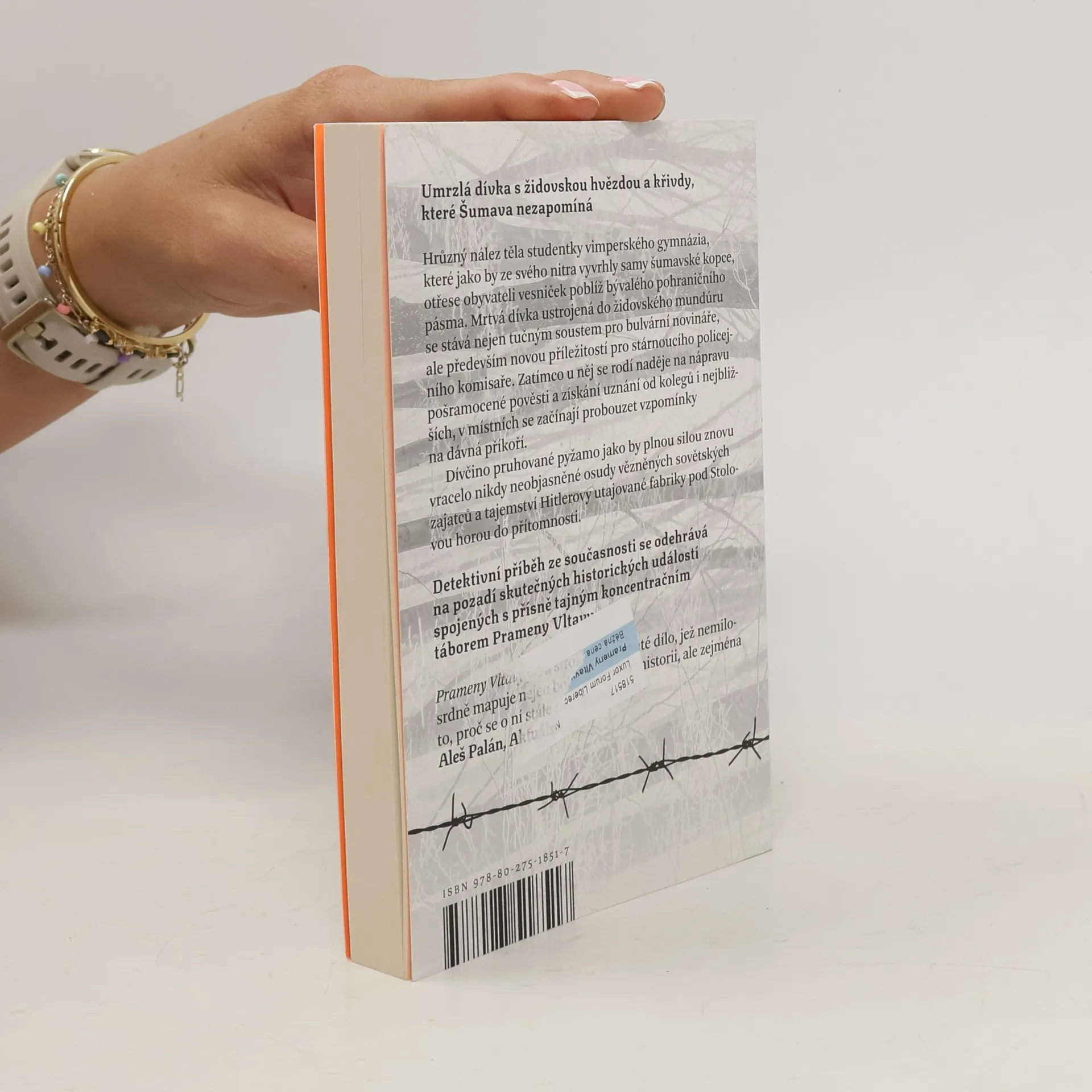Detektivní příběh ze současnosti se odehrává na pozadí skutečných historických událostí spojených s přísně tajným koncentračním táborem Prameny Vltavy na Šumavě. Umrzlá dívka s židovskou hvězdou a křivdy, které Šumava nezapomíná. Hrůzný nález těla studentky vimperského gymnázia, které jako by ze svého nitra vyvrhly samy šumavské kopce, otřese obyvateli vesniček poblíž bývalého pohraničního pásma. Mrtvá dívka ustrojená do židovského mundúru se stává nejen tučným soustem pro bulvární novináře, ale především novou příležitostí pro stárnoucího policejního komisaře. Zatímco u něj se rodí naděje na nápravu pošramocené pověsti a získání uznání od kolegů i nejbližších, v místních se začínají probouzet vzpomínky na dávná příkoří. Dívčino pruhované pyžamo jako by plnou silou znovu vracelo nikdy neobjasněné osudy vězněných sovětských zajatců a tajemství Hitlerovy utajované fabriky pod Stolovou horou do přítomnosti. Nakladatelská anotace. Kráceno.