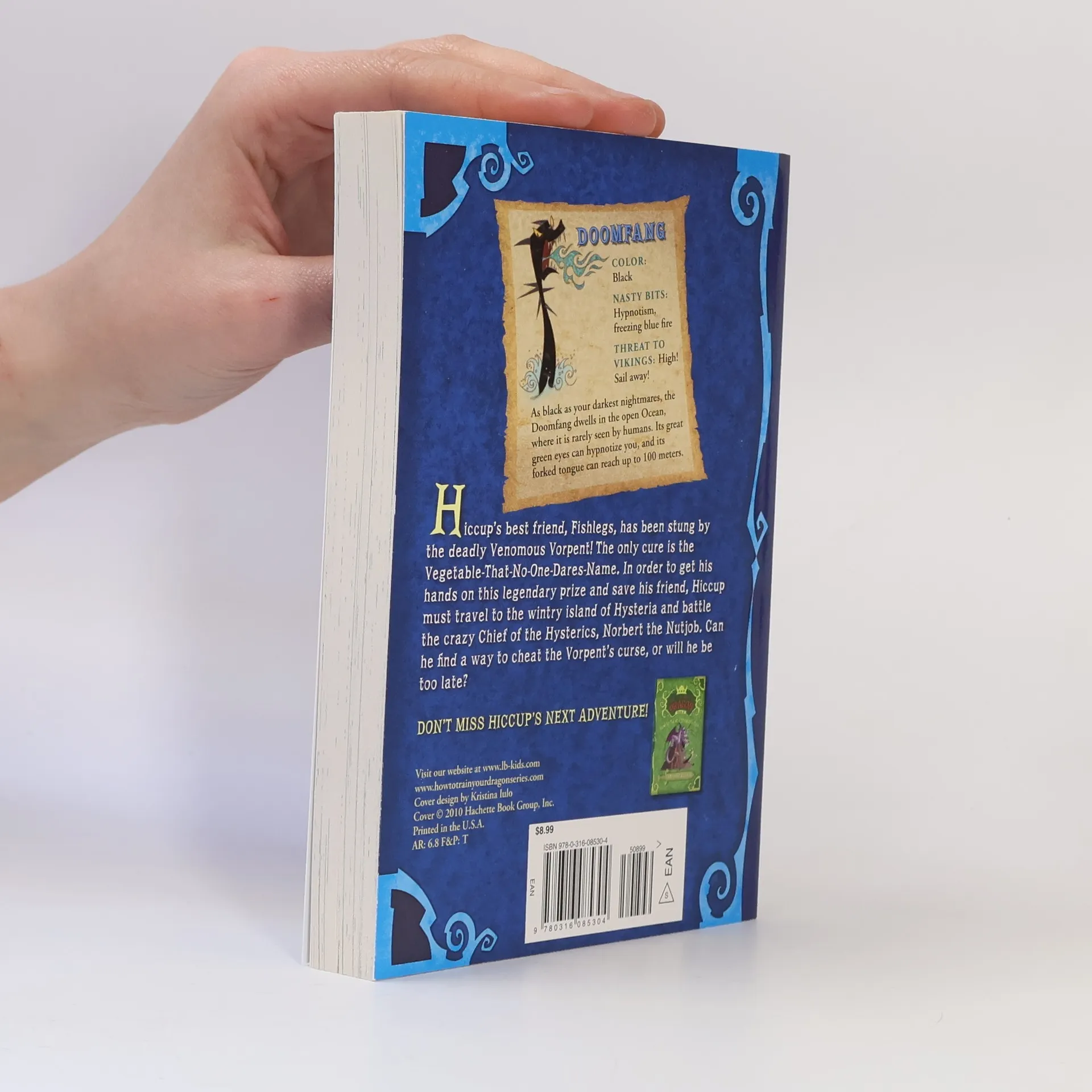 In his 4th sidesplitting adventure, Hiccup Horrendous Haddock III must rescue his best friend, Fishlegs, from the deadly disease Vorpentitis. The only cure is rare and almost impossible to find...a potato. But where will Hiccup find such a thing? He'll have to dodge the terrible Sharkworms, battle Doomfangs, and outwit crazy Hooligans if he's going to be a Hero...again.A fast paced plot, slapstick humor, witty dialogue and imaginative black and white illustrations enhance this exciting tale.