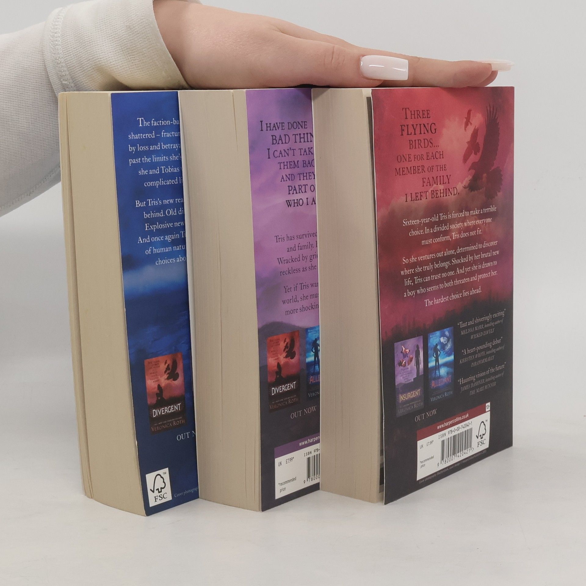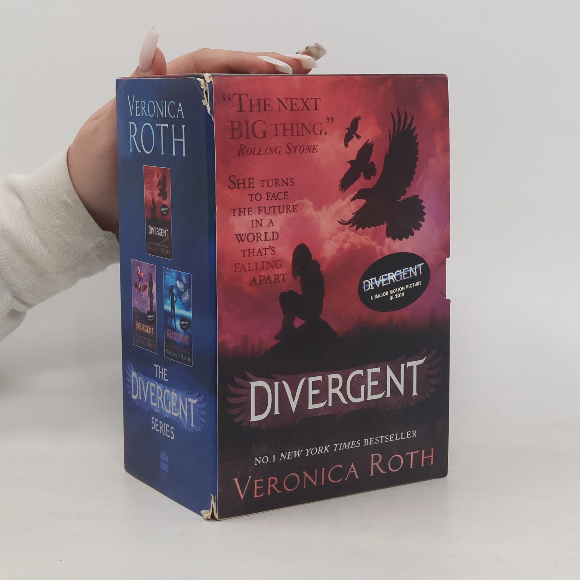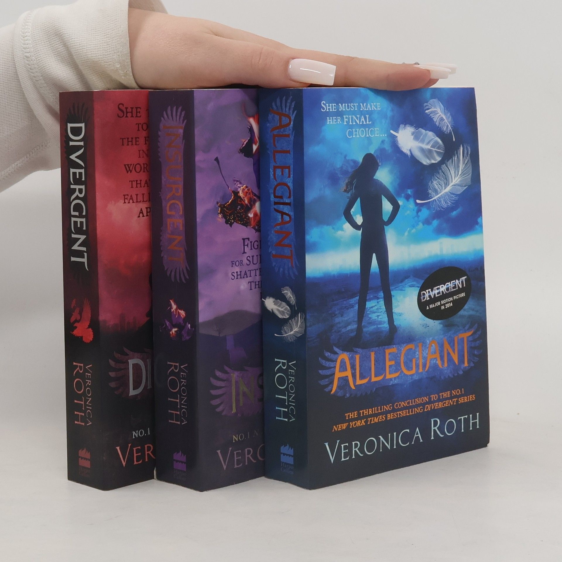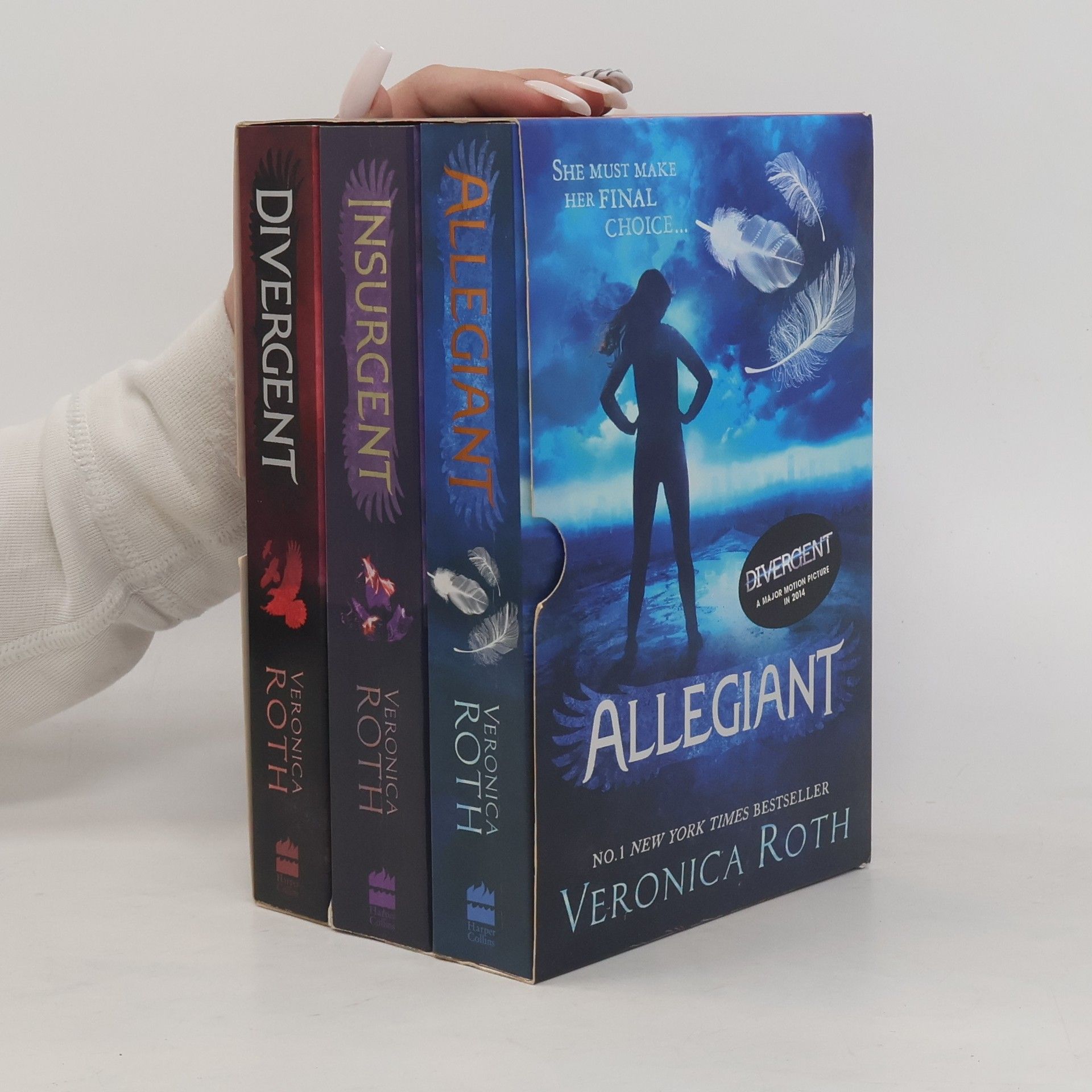 No. 1 New York Times bestsellers DIVERGENT, INSURGENT and ALLEGIANT in collector's trilogy set. DIVERGENT - a major motion picture in 2014. Divergent:Sixteen-year-old Tris has been forced to make a terrible choice. In a divided society where everyone must conform, Tris does not fit.So she ventures out, alone, determined to find out where she truly belongs. Tris can trust no one in this brutal new world, but she is drawn to a boy who seems to both threaten and protect her. Insurgent:Tris has survived a brutal attack on her home, but she has paid a terrible price. Wracked by grief and guilt, she becomes reckless as she struggles to accept her new future. If Tris wants to uncover the truth, she must be stronger than ever as more shocking choices and sacrifices lie ahead. Allegiant:The faction-based society that Tris once believed in is shattered - fractured by violence and power struggles and scarred by loss and betrayal. So when offered a chance to explore the world past the limits she's known, Tris is ready. Perhaps beyond the fence, she will find a simple new life, free from complicated lies, tangled loyalties and painful memories. But Tris's new reality is even more alarming than the one she left behind. And once again, Tris must battle to comprehend the complexities of human nature - and of herself - while facing impossible choices about courage, allegiance, sacrifice and love.