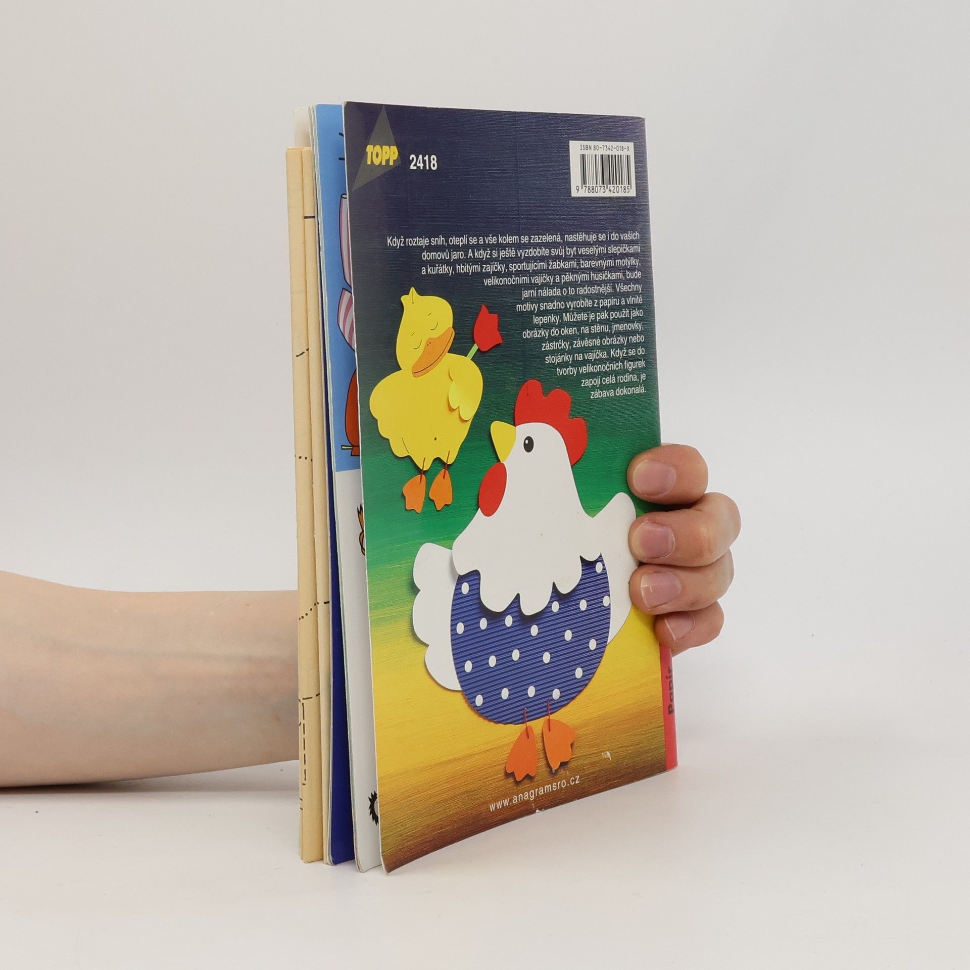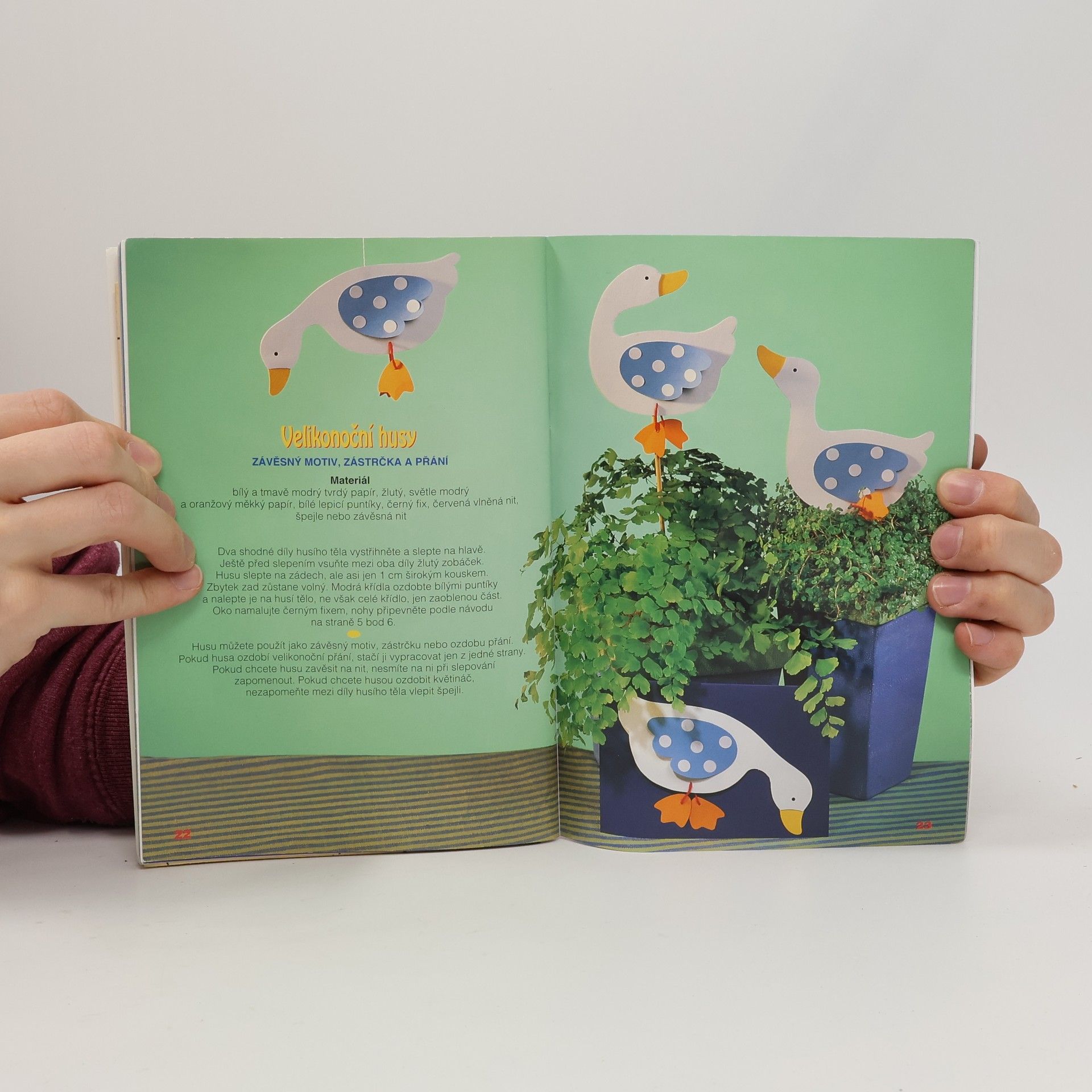 V této knize přinášíme návody na spoustu velikonočních dekorací z různých druhů papíru, které dokouzlí správnou veselou jarní náladu. Velká kytice čerstvých větviček a veselých ozdob vytvoří tu správnou jarní atmosféru, ozdobený stůl zve k útulnému posezení, barevné obrázky vás zdraví jak zvenčí, tak i zevnitř. Pro děti není nic hezčího, než ty krásné motivy vytvářet společně se svými rodiči.