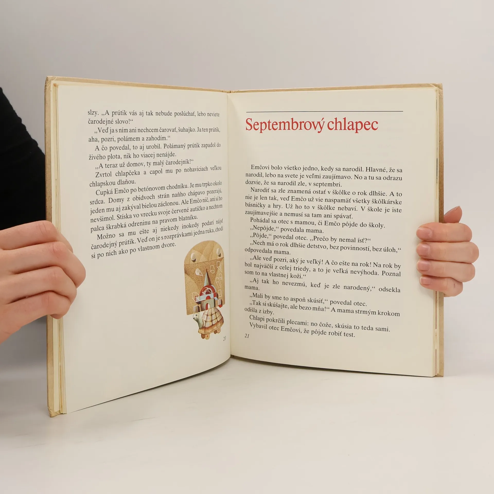 Neďaleko Dunaja a neďaleko hradu býva chlapček. Má hnedé oči a hnedé vlasy, ktoré neposlúchajú nijaký hrebeň. V lete mu naskočia na tvári pehy a usadia sa okolo nosa. S príchodom zimy pehy zmiznú. Taký celkom obyčajný je to chlapček. Aj meno má obyčajné, Emil Čorba. Ale všetci ho volajúlen Emčo, ktovie prečo. Volá ho tak mama, ocko, kamarát Radko Sýkora, deti v materskej škole, súdružka učiteľka aj starí rodičia, čo bývajú na Myjave...
