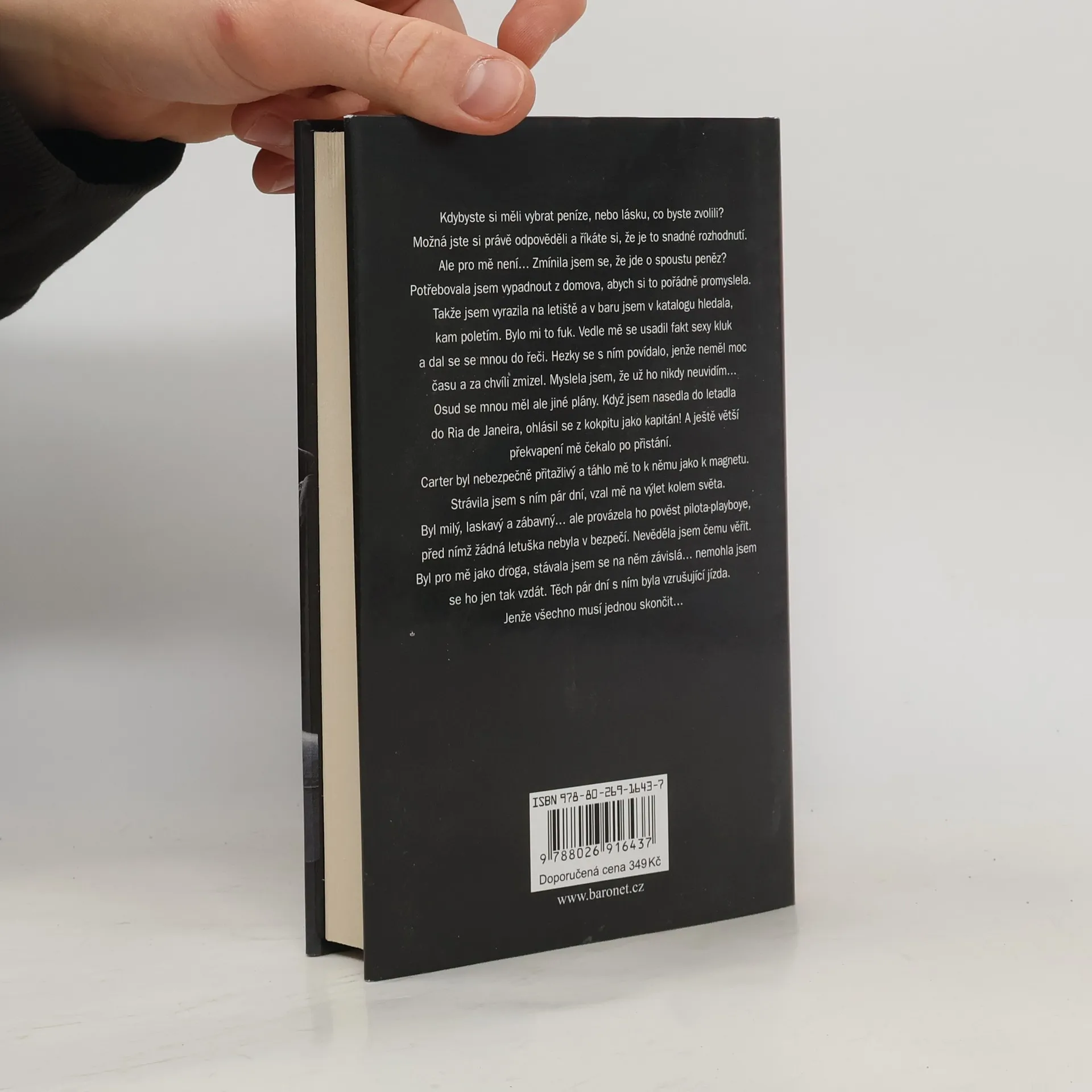 Kdybyste si měli vybrat peníze, nebo lásku, co byste zvolili? Možná jste si právě odpověděli a říkáte si, že je to snadné rozhodnutí. Ale pro mě není… Zmínila jsem se, že jde o spoustu peněz? Potřebovala jsem vypadnout z domova, abych si to pořádně promyslela. Takže jsem vyrazila na letiště a v baru jsem v katalogu hledala, kam poletím. Bylo mi to fuk. Vedle mě se usadil fakt sexy kluk a dal se se mnou do řeči. Hezky se s ním povídalo, jenže neměl moc času a za chvíli zmizel. Myslela jsem, že už ho nikdy neuvidím… Osud se mnou měl ale jiné plány. Když jsem nasedla do letadla do Ria de Janeiro, ohlásil se z kokpitu jako kapitán! A ještě větší překvapení mě čekalo po přistání. Carter byl nebezpečně přitažlivý a táhlo mě to k němu jako k magnetu. Strávila jsem s ním pár dní, vzal mě na výlet kolem světa. Byl milý, laskavý a zábavný… ale provázela ho pověst pilota-playboye, před nímž žádná letuška nebyla v bezpečí. Nevěděla jsem čemu věřit. Byl pro mě jako droga, stávala jsem se na něm závislá… nemohla jsem se ho jen tak vzdát. Těch pár dní s ním byla vzrušující jízda. Jenže všechno musí jednou skončit…