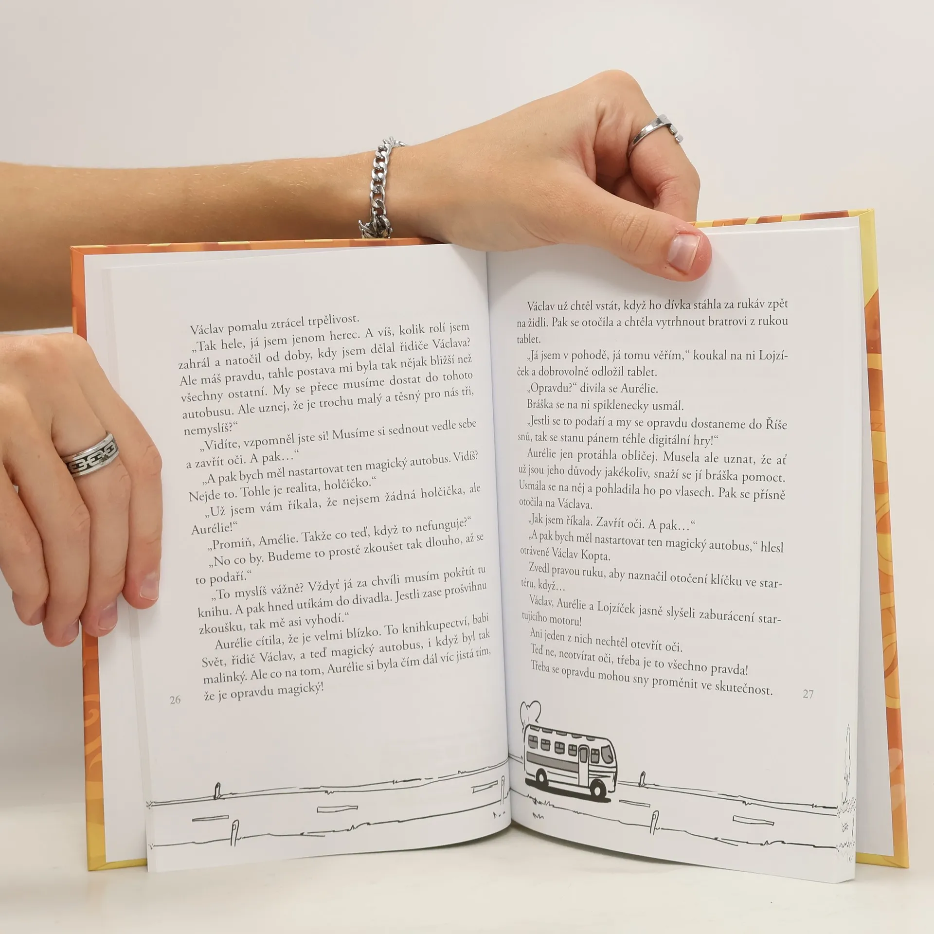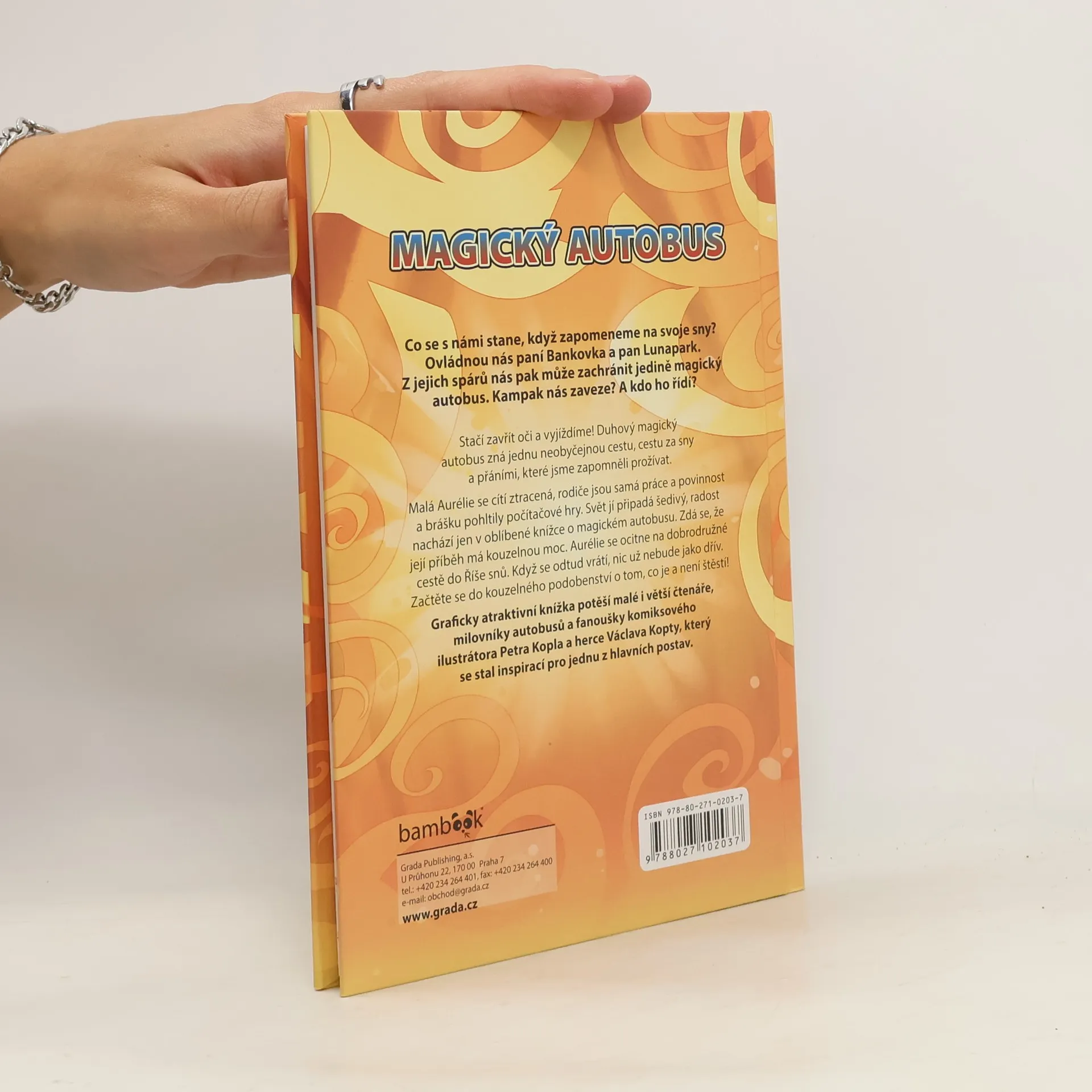 Stačí zavřít oči a vyjíždíme! Duhový magický autobus zná jednu zapomenutou cestu, cestu do snů a pohádkových příběhů, které jsme zapomněli prožívat. Malá Aurélie se cítí ztracená, rodiče jsou samá práce a povinnost a brášku pohltily počítačové hry. Svět jí připadá šedivý. Radost nachází jen v oblíbené knížce o magickém autobusu. Zdá se, že její příběh má kouzelnou moc. Aurélie se ocitne na dobrodružné cestě do Říše snů. Když se odtud vrátí, nic už nebude jako dřív. Začtěte se do kouzelného podobenství o tom, co je a není štěstí! Graficky atraktivní knížka potěší malé i větší čtenáře, milovníky autobusů a fanoušky ilustrátora Petra Kopla a herce Václava Kopty, který se stal inspirací pro jednu z hlavních postav.