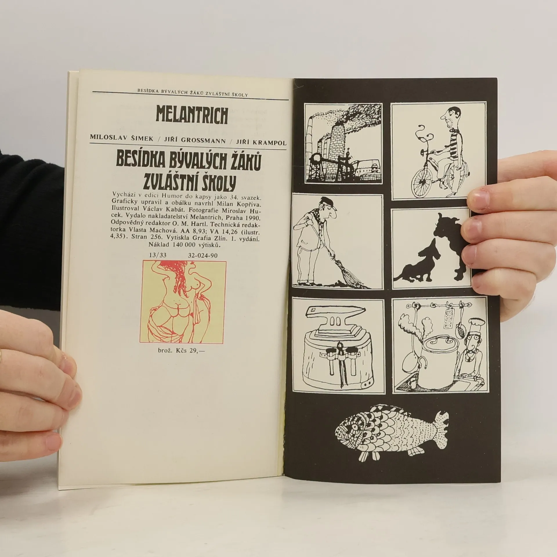 Kniha obsahuje povídky našich předních komiků Miloslava Šimka, Jiřího Grossmanna a Jiřího Krampola. Dělí se na dvě části. V první části jsou povídky, které napsal v kavárně Slavie MŠ s již zesnulým JG. V druhé polovině publikace se setkáváme s humornými příběhy MŠ a JK. Všichni tři herci působili resp. působí v divadle Semafor, kde uvedli hry „Besídka žáků zvláštní školy“ resp. „Besídka bývalých žáků zvláštní školy“, podle nichž byla napsána tato kniha.