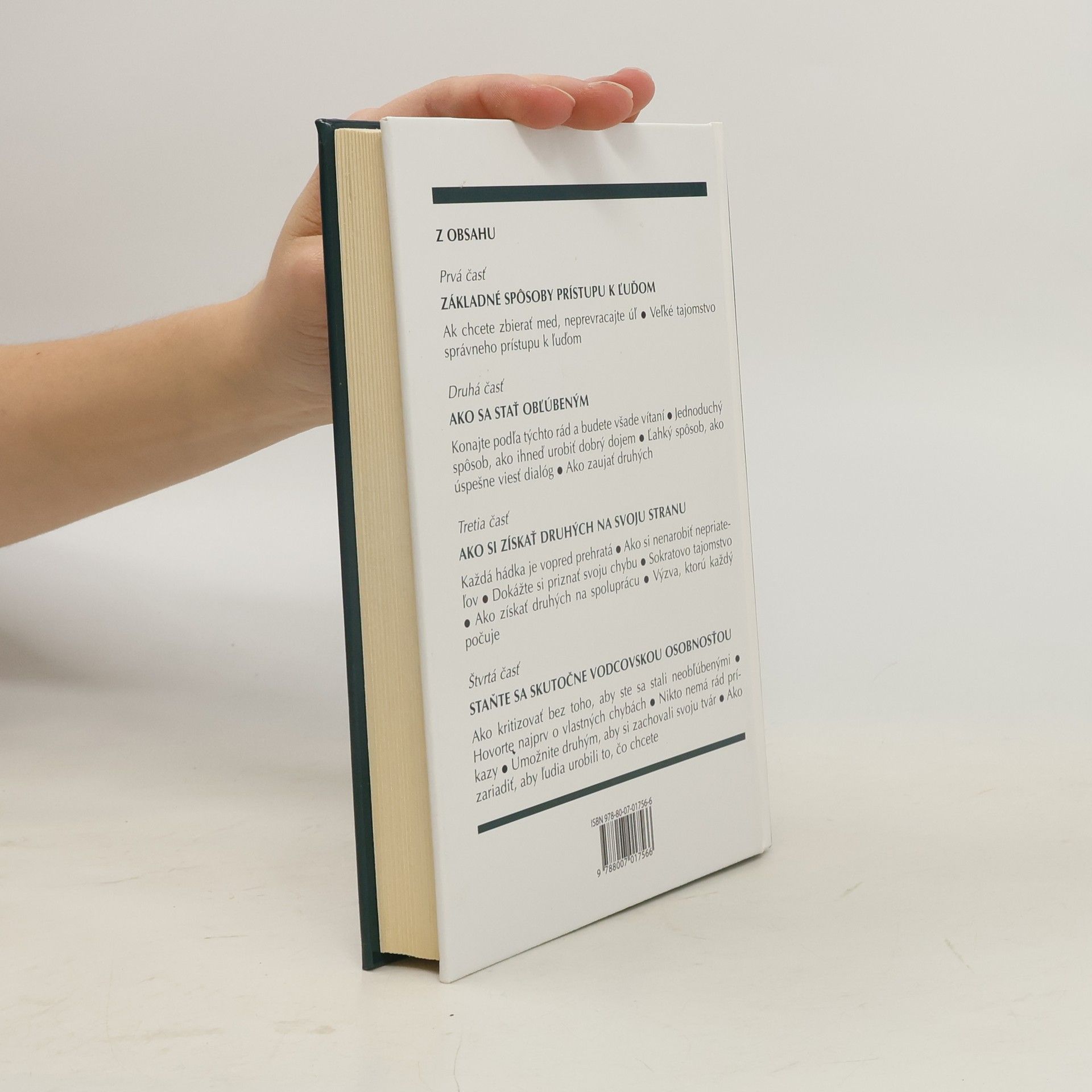 Dale Carnegie ponúka vo svojich knihách, ktoré sa stali svetovými bestsellermi, praktické návody, ktoré môžete začať používať hneď zajtra. Tieto knihy môžu zmeniť celý váš život. Len si treba uvedomiť, ako využiť svoje skryté možnosti. V tomto titule nájdete Šesť spôsobov, ako sa stať obľúbeným Deväť spôsobov, ako bez odporu zmeniť ľudí bez toho, aby sme ich urazili Dvanásť spôsobov, ako si získať iných na svoju stranu Pomocou tejto knihy dosiahnete zlepšenie v ôsmich smeroch: Vybŕdnete z bežných rutinných postupov, napadnú vám zaujímavé myšlienky, získate nové predstavy a ambície. Ľahko a rýchlo získate nových priateľov. Vaša popularita vzrastie. Dokážete získať iných na svoju stranu. Vzrastie Váš vplyv i schopnosť dotiahnuť veci do konca. Poradíte si pri riešení sťažností, naučíte sa vyhýbyť sa konfliktom, vaša komunikácia s druhými bude bez ťažkostí a stane sa príjemnou. Naučíte sa ľahko hovoriť a stane sa z vás zábavný spoločník. Dokážete viac nadchnúť svojich spolupracovníkov. Všetky uvedené zlepšenia dosiahlo pomocou tejto knihy viac ako pätnásť miliónov čitateľov v tridsiatich krajinách sveta.