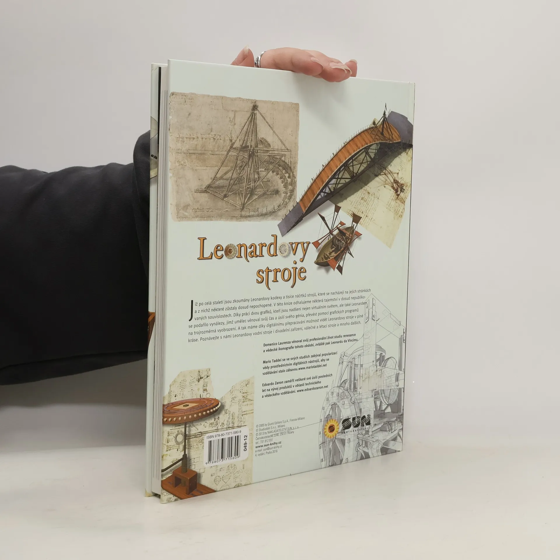 V této knize odhalujeme některá tejemství v dosud nepublikovaných souvislostech. Díky práci dvou grafiků, kteří jsou nadšeni nejen virtuálním světem, ale také Leonardem, se podařilo vynálezy, jimž umělec věnoval svůj čas a úsilí svého génia, převést pomocí grafických programů na trojrozměrná vyobrazení. A tak máme díky digitálnímu přepracování možnost vidět Leonardovy stroje v plné kráse.