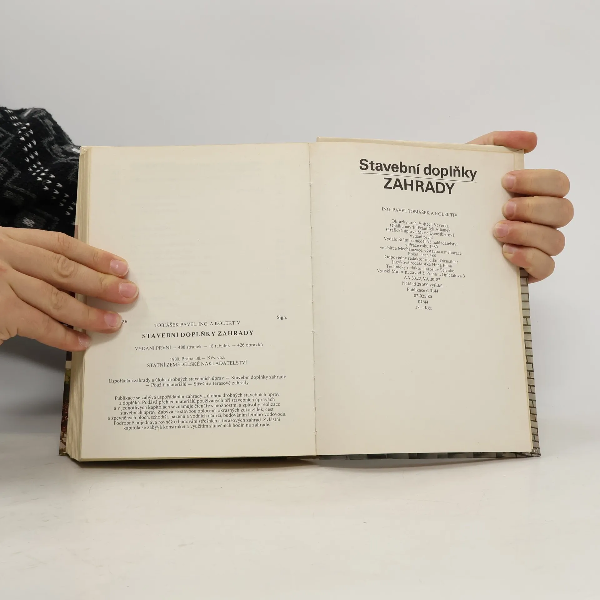 Publikace, věnovaná stavební stránce zahrad, přináší základní informace o různých stavebních materiálech a jejich zpracování. Popisuje ploty a oplocení, stavbu zdí a zídek, umístění a konstrukci slunečních hodin, dřevěné zahradní doplňky, provádění nátěrů a konzervace zahradníchstaveb a zařízení, budování skalky, letního vodovodu, bazénů, vodních nádrží, terasových a střešních zahrad. Zvláštní kapitola se zabývá konstrukcí a využitím slunečních hodin na zahradě.