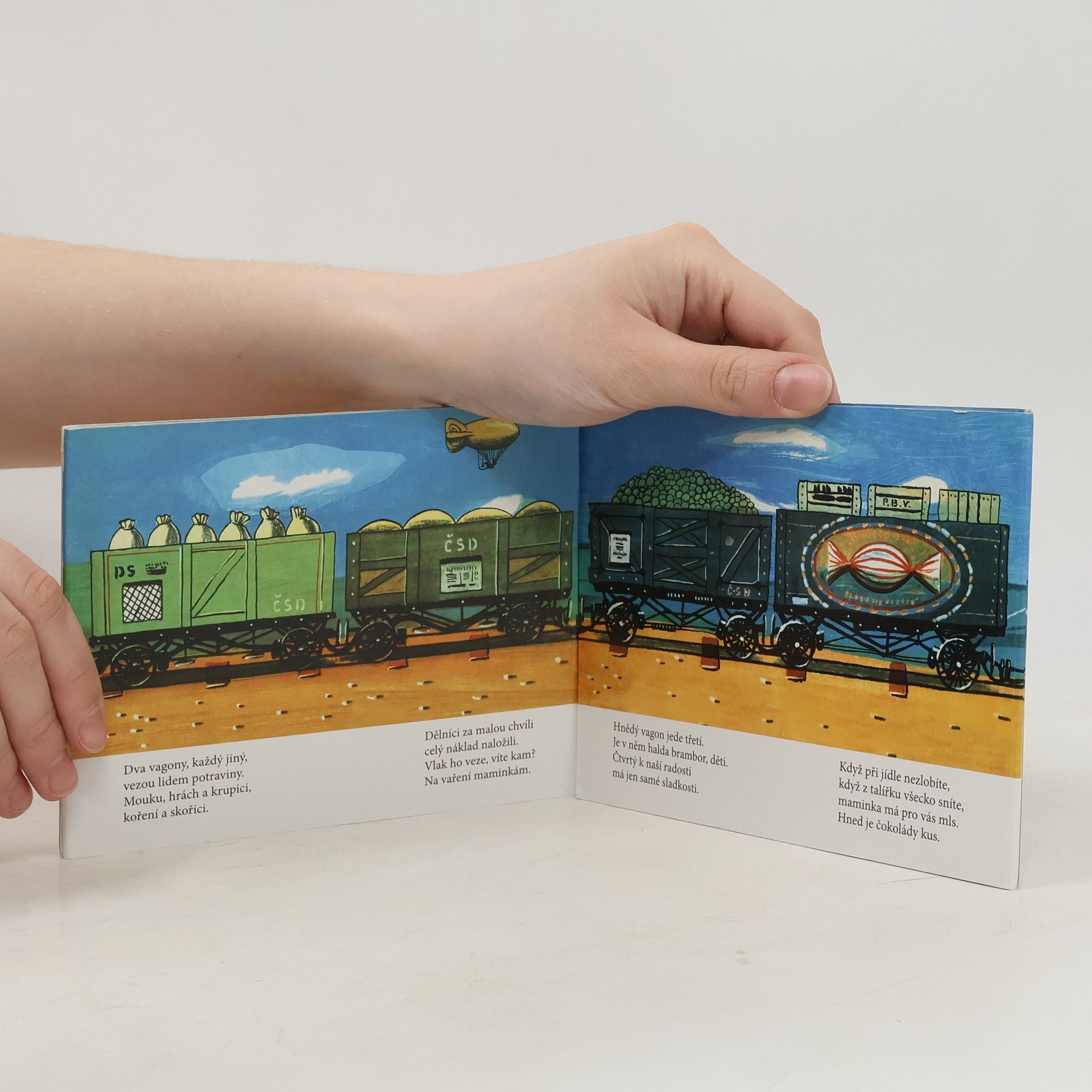 Po kolejích jede vláček, rychlý vláček – náklaďáček. Od nádraží k nádraží různé zboží rozváží. Leporelo s dlouhým nákladním vlakem Kamila Lhotáka zaujme každého malého kluka. A protože jde o vlak s parní lokomotivou, určitě zaujme i tatínky, kteří svým potomkům jistě rádi vysvětlí, že dnes už takový vlak uvidí na kolejích jen výjimečně, protože technika se od prvního vydání této knížky (rok 1954!) velmi výrazně zdokonalila a zmodernizovala. Obrázky doprovázejí verše Josefa Hiršala.