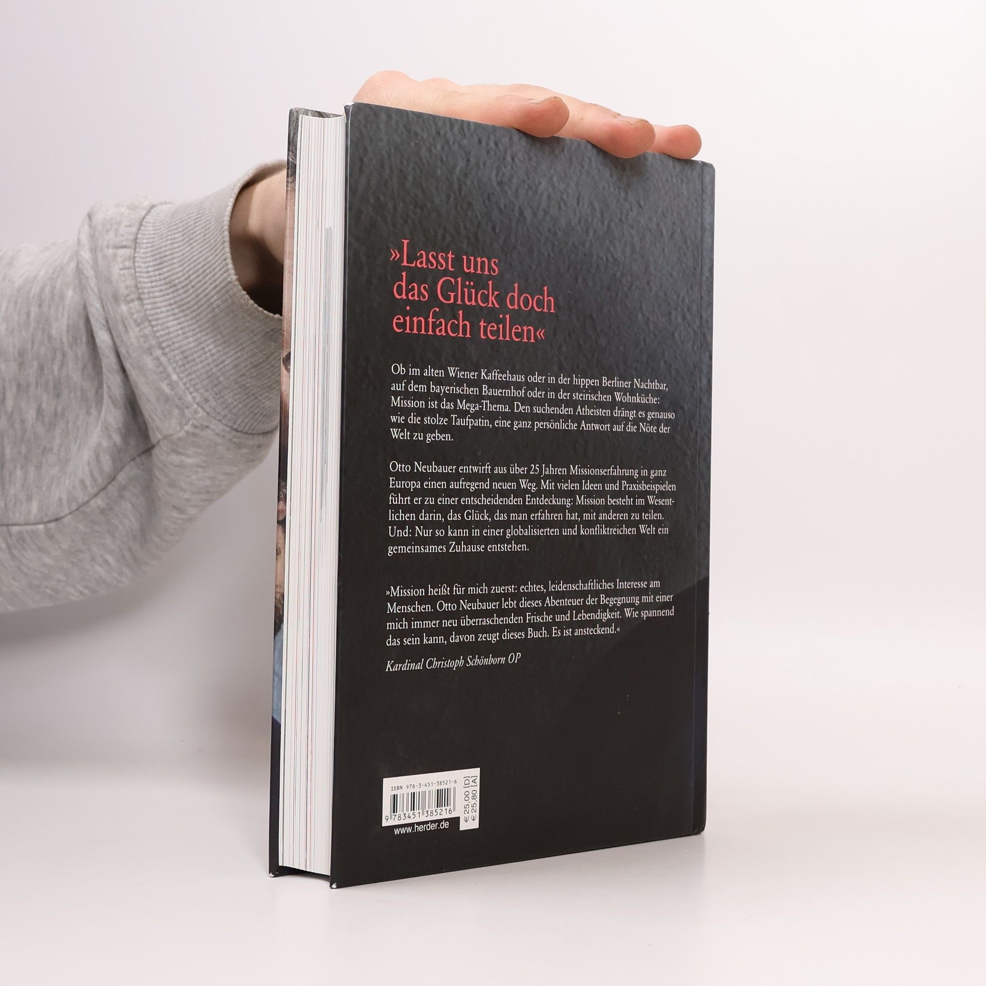 Ob im alten Wiener Kaffeehaus oder in der hippen Berliner Nachtbar, in der steirischen Wohnküche oder dem hessischen Friseursalon: Das Reden über Gott und die Welt zieht neue Kreise durch Gesellschaft und Kirche. Ein Begriff ist dabei zentral: Mission. Denn jeder Mensch träumt davon, seine Mission zu haben, seinen Weg durch das Leben zu finden. Das gilt für den suchenden Atheisten wie für die stolze Taufpatin: Wir alle wollen eine ganz persönliche Antwort auf die Nöte, aber auch die Freuden der Welt geben. Otto Neubauer entwirft aus über 25 Jahren Missionserfahrung in ganz Europa einen aufregenden neuen Weg. Mit Fragen, Antworten und Aufgaben, unzähligen neuen Ideen, erprobten Praxisbeispielen und vielen Geschichten führt er zu einer entscheidenden Entdeckung: Mission besteht darin, Glück zu erfahren und es zu teilen. Damit auch in einer unsicherer gewordenen Welt ein gemeinsames Zuhause entstehen kann. Mission heißt es für mich zuerst: echtes, leidenschaftliches Interesse am Menschen. Otto Neubauer lebt dieses Abenteuer der Begegnung mit einer mich immer neu überraschenden Frische und Lebendigkeit. Wie spannend das sein kann, davon zeugt dieses Buch. Es ist ansteckend. Kardinal Christoph Schönborn OP