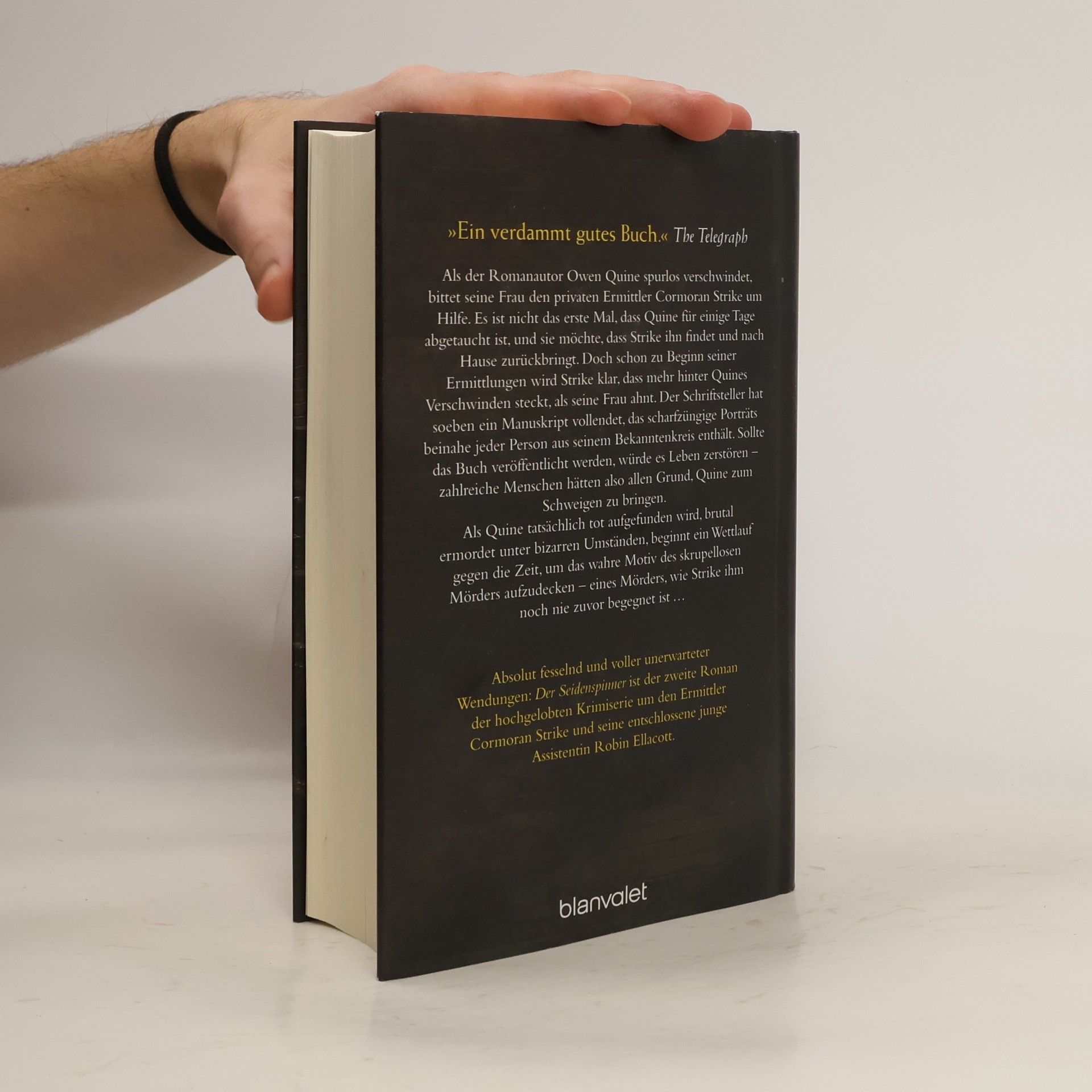 Der zweite Fall für das außergewöhnliche Ermittlerduo von Robert Galbraith, dem Pseudonym von JK Rowling! Als der Romanautor Owen Quine spurlos verschwindet, bittet seine Frau den privaten Ermittler Cormoran Strike um Hilfe. Es ist nicht das erste Mal, dass Quine für einige Tage abgetaucht ist, und sie möchte, dass Strike ihn findet und nach Hause zurückbringt. Doch schon zu Beginn seiner Ermittlungen wird Strike klar, dass mehr hinter Quines Verschwinden steckt, als seine Frau ahnt. Der Schriftsteller hat soeben ein Manuskript vollendet, das scharfzüngige Porträts beinahe jeder Person aus seinem Bekanntenkreis enthält. Sollte das Buch veröffentlicht werden, würde es Leben zerstören – zahlreiche Menschen hätten also allen Grund, Quine zum Schweigen zu bringen.Als Quine tatsächlich tot aufgefunden wird, brutal ermordet unter bizarren Umständen, beginnt ein Wettlauf gegen die Zeit, um das wahre Motiv des skrupellosen Mörders aufzudecken – eines Mörders, wie Strike ihm noch nie zuvor begegnet ist …Absolut fesselnd und voller unerwarteter Wendungen: Der Seidenspinner ist der zweite Roman der hochgelobten Krimiserie um den Ermittler Cormoran Strike und seine entschlossene junge Assistentin Robin Ellacott.