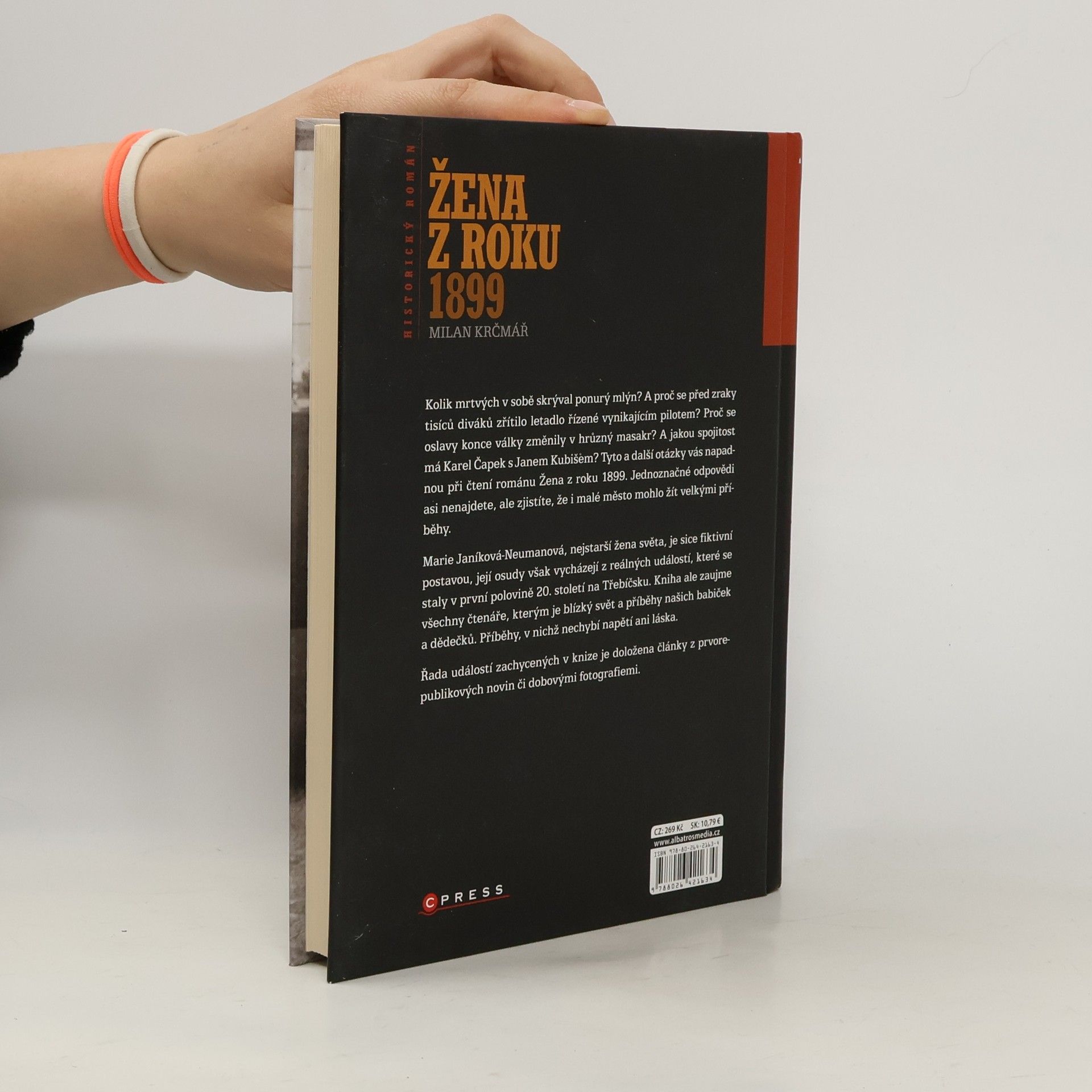 Vyprávění doložené články z provorepublikových novin a dobovými fotografiemi Kolik mrtvých v sobě skrýval ponurý mlýn? A proč se před zraky tisíců diváků zřítilo letadlo řízené vynikajícím pilotem? Proč se oslavy konce války změnily v hrůzný masakr? A jakou spojitost má Karel Čapek s Janem Kubišem? Tyto a další otázky vás napadnou při čtení románu Žena z roku 1899. Jednoznačné odpovědi asi nenajdete, ale zjistíte, že i malé město mohlo žít velkými příběhy. Marie Janíková-Neumanová, nejstarší žena světa, je sice fiktivní postavou, její osudy však vycházejí z reálných událostí, které se staly v první polovině 20. století na Třebíčsku. Kniha ale zaujme všechny čtenáře, kterým je blízký svět a příběhy našich babiček a dědečků. Příběhy, v nichž nechybí napětí ani láska. Řada událostí zachycených v knize je doložena články z prvorepublikových novin či dobovými fotografiemi.