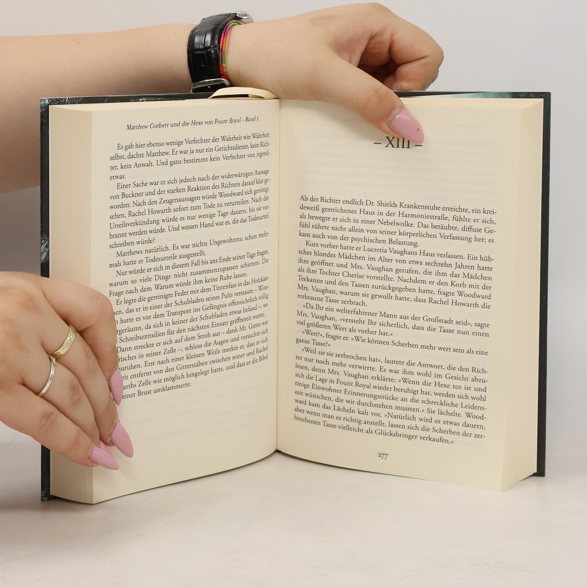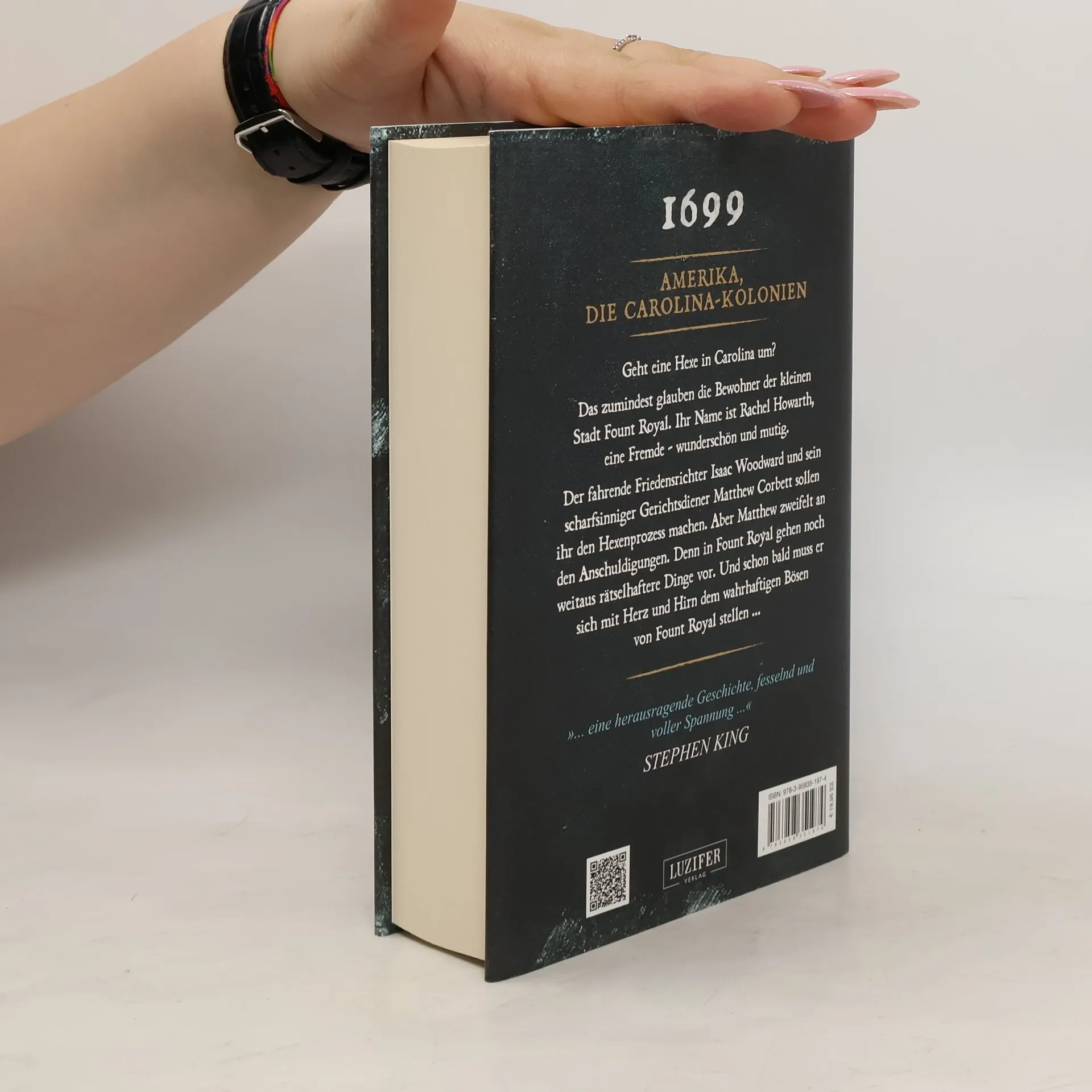 1699 in den Carolina-Kolonien Amerikas ... Die Einwohner von Fount Royal sind überzeugt, dass eine Hexe für die unerklärlichen Tragödien in ihrem Dorf verantwortlich ist. Sie verlangen, dass die schöne Witwe Rachel Howarth vor Gericht gestellt und wegen Hexerei hingerichtet wird. Der Prozess wird vom reisenden Richter Isaac Woodward mithilfe seines scharfsinnigen jungen Gerichtsdieners Matthew Corbett geführt. Matthew glaubt an Rachels Unschuld und muss sich bald dem wahren Bösen stellen, das in Fount Royal umgeht ... ... eine herausragende Geschichte, fesselnd und voller Spannung ... [Stephen King]