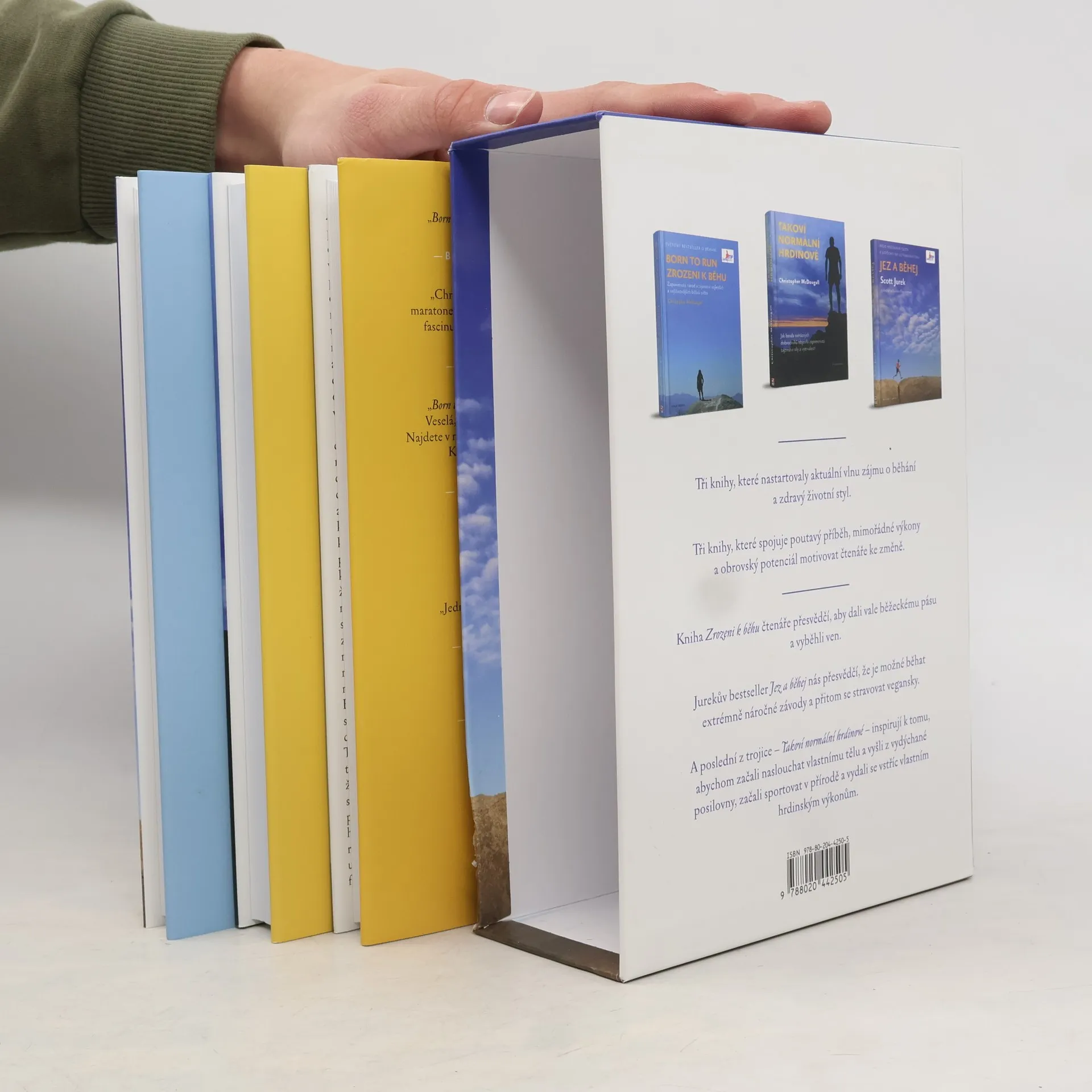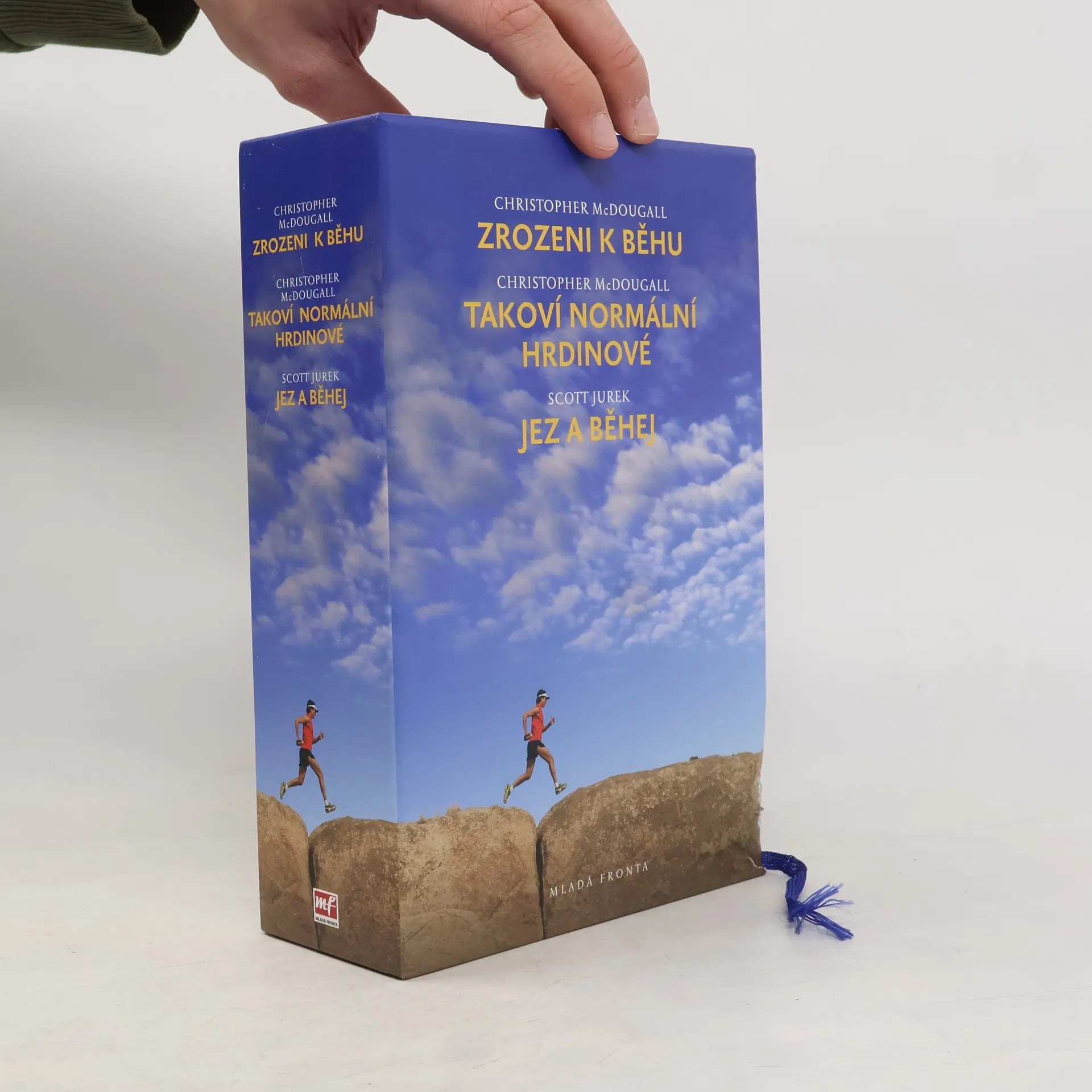 Tato knižní sada se zaměřuje na běhání jako životní styl a jeho vliv na tělo a mysl. V první části se čtenáři setkávají s osobními zkušenostmi a závodními úspěchy Scotta Jureka, jednoho z nejznámějších ultramaratonských běžců, který sdílí své názory na trénink, výživu a psychologii běhu. Druhá část, napsaná Christopherem McDougallem, se zabývá historií běhání a jeho kořeny v lidské evoluci, přičemž se zaměřuje na Tarahumara, indiánský kmen v Mexiku, který je známý svými výjimečnými běžeckými schopnostmi. Tematicky se kniha dotýká otázek odolnosti, vytrvalosti a přirozeného pohybu, přičemž zkoumá, jak běhání ovlivňuje nejen fyzickou kondici, ale i duševní zdraví. Čtenáři mohou očekávat kombinaci osobních příběhů, vědeckých poznatků a kulturních reflexí, které společně vytvářejí komplexní pohled na běh jako fenomén. Sada nabízí inspiraci pro běžce všech úrovní, ale také pro ty, kteří se zajímají o širší kontext běhání v lidské kultuře.