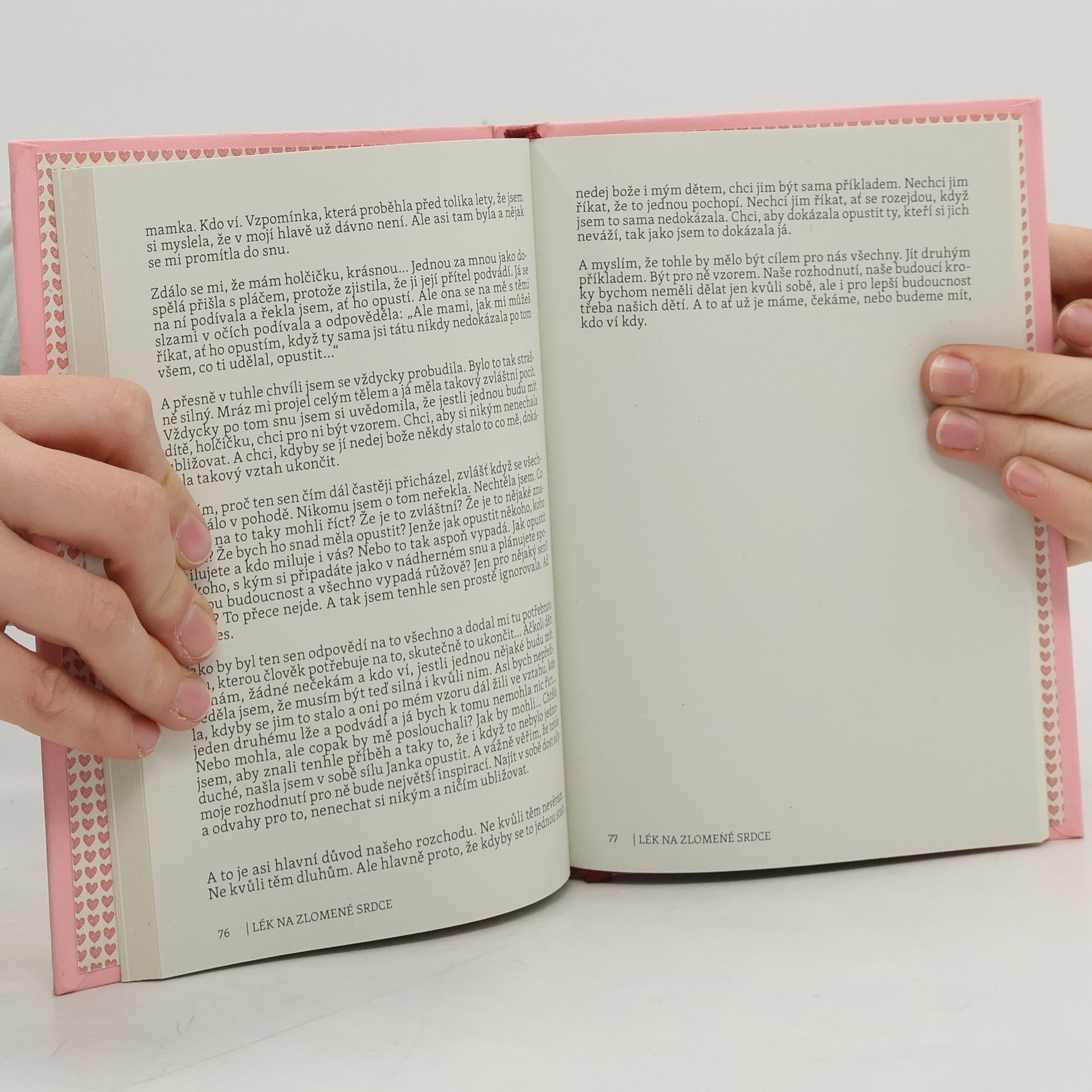 Zlomené srdce vždycky bolí stejně a je jedno, jestli je nám šestnáct, třicet nebo padesát. Jestli jsme se rozešli, nebo dostali kopačky. Jestli s tím partnerem jsme měsíc nebo deset let. Je to zkrátka ztráta. A bolí to. Najednou cítíme, jak se nám naše plány rozplynuly, jak nevíme, jak dál, jestli to samy zvládneme a máme strach… A právě proto vznikla knížka Lék na zlomené srdce. Chtěla jsem a celou jsem ji psala tak, abyste při pročítání měli pocit, jako že na to nejste sami. Chtěla jsem, aby vám dodala odvahu, vnitřní sílu a sebelásku. A chtěla jsem, abyste v ní našli především naději.♥