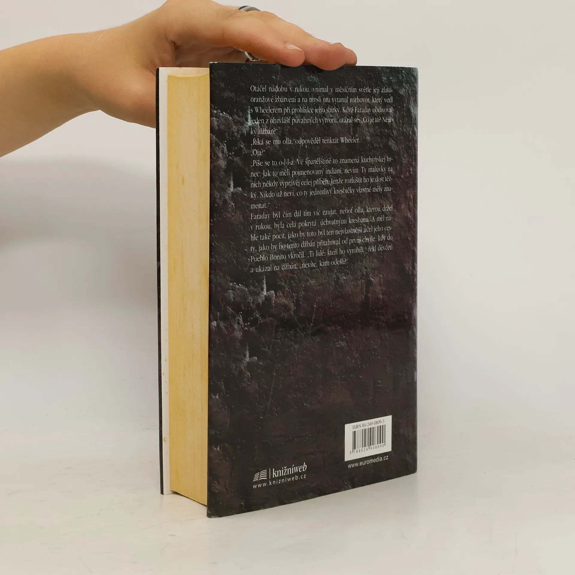 Hoshi´tiva je mladá, krásná a šťastná. Hledí na svého ženicha, stojícího u Stěny paměti a nemůže se dočkat, až ji Ahoté po svatbě sevře v náručí. Netuší, že byla vyvolena pro jiný osud: podle rozhodnutí vládce Jakála se má odebrat do Prostředního sídla a podrobit se všem rozkazům, jinak její Lid slunce stihne krutý trest. Nenajde odvahu se vzepřít. Ještě ne. Vytváří ty nejkrásnější deštné džbány, které mají konečně přivolat vláhu, a je neodolatelně vábena k posvátnému palouku, kde jednou zahlédla krásného Jakála. Avšak déšť nepřichází, Hoshi´tiva sleduje, jak ze sídla prchají lidé, a ví, že její život je teď už spojen s životem vladařovým. Když po dlouhých staletích objeví střep Hoshi´tiwiny zlaté olly doktor Faraday Hightower, netuší, jak hluboce ovlivní nejen jeho život. Když hledá tajemné skály a jeskyně, neví, že díky tomuto artefaktu znovu pozná a zase ztratí lásku, že jeho dcera Morgana zdědí posedlou touhu po hledání a náklonnost ke krajině poseté památkami na minulost, a po trýznivých zjištěních, životních zklamáních a ztrátách dosáhne štěstí. Kdo ví, snad pak tajemný duch Hoshi´tiwy, šamanky zaniklého indiánského kmene, která se zjevovala jejímu otci a jejíž hlas Morgana slýchala, nalezne konečně klid.... celý text