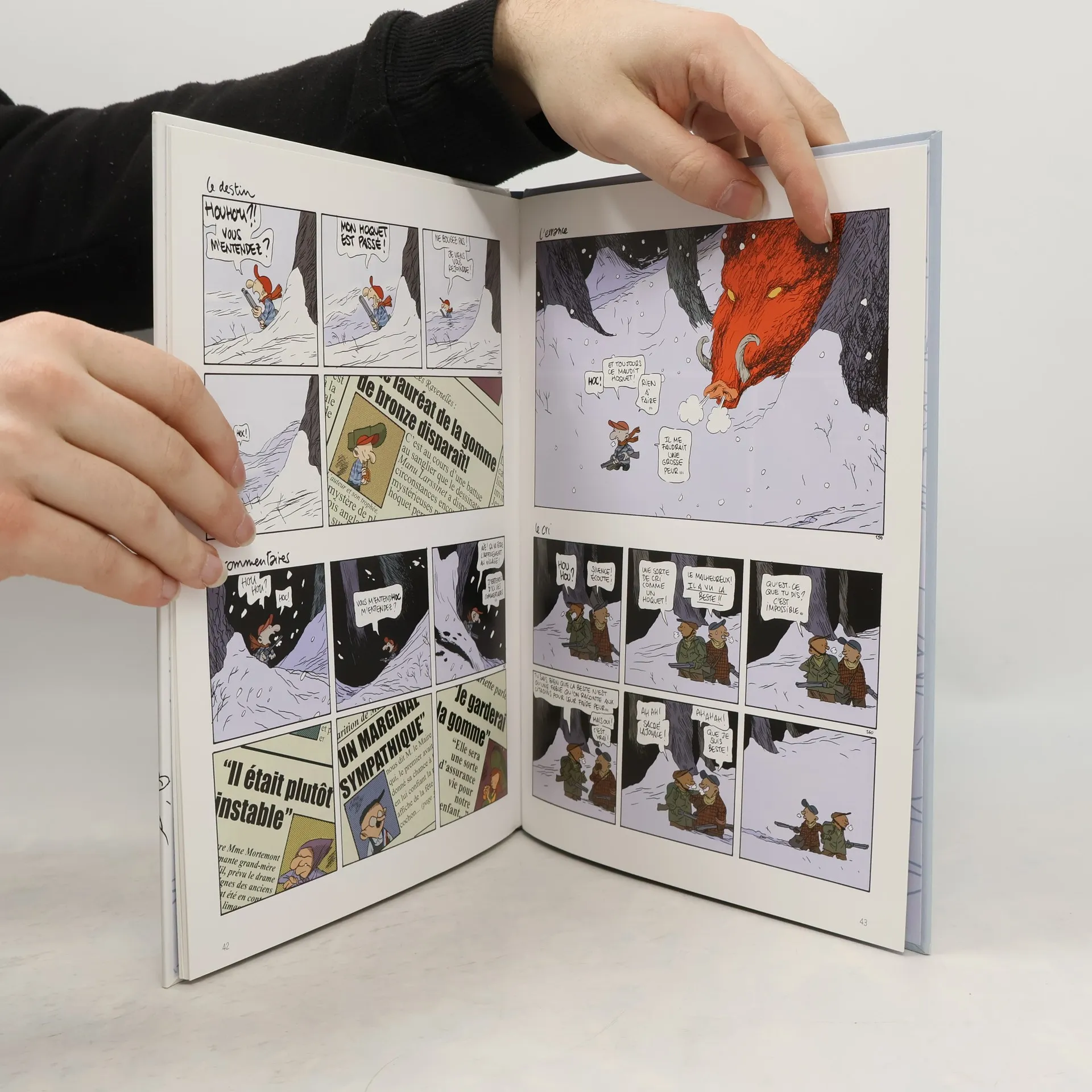 Ca y est, Mariette est enceinte. Manu aussi. Alors, il potasse Laurence Pernoud©, qu'il trouve très évasive sur les affres du futur papa, et il s'entraîne activement ? avec simulation du jour J, valises dans le vestibule et repérage du trajet. Bref, il s'angoisse. Pour se détendre, il va au festival de BD de Château-Moignon. Ça ne le détend pas, mais il se fait un copain - le lama Dondup, dessinateur tibétain exilé - et remporte la Gomme de Bronze. Et puis, évidemment, il rate la naissance. Pendant qu'il erre dans la neige, occupé à traquer un sanglier fictif, le bébé naît grâce aux bons soins de la vieille Mortemont, qui, contre toute apparence, fut (jadis) jeune, amoureuse, résistante et sage-femme. Les gens sont stupéfiants.